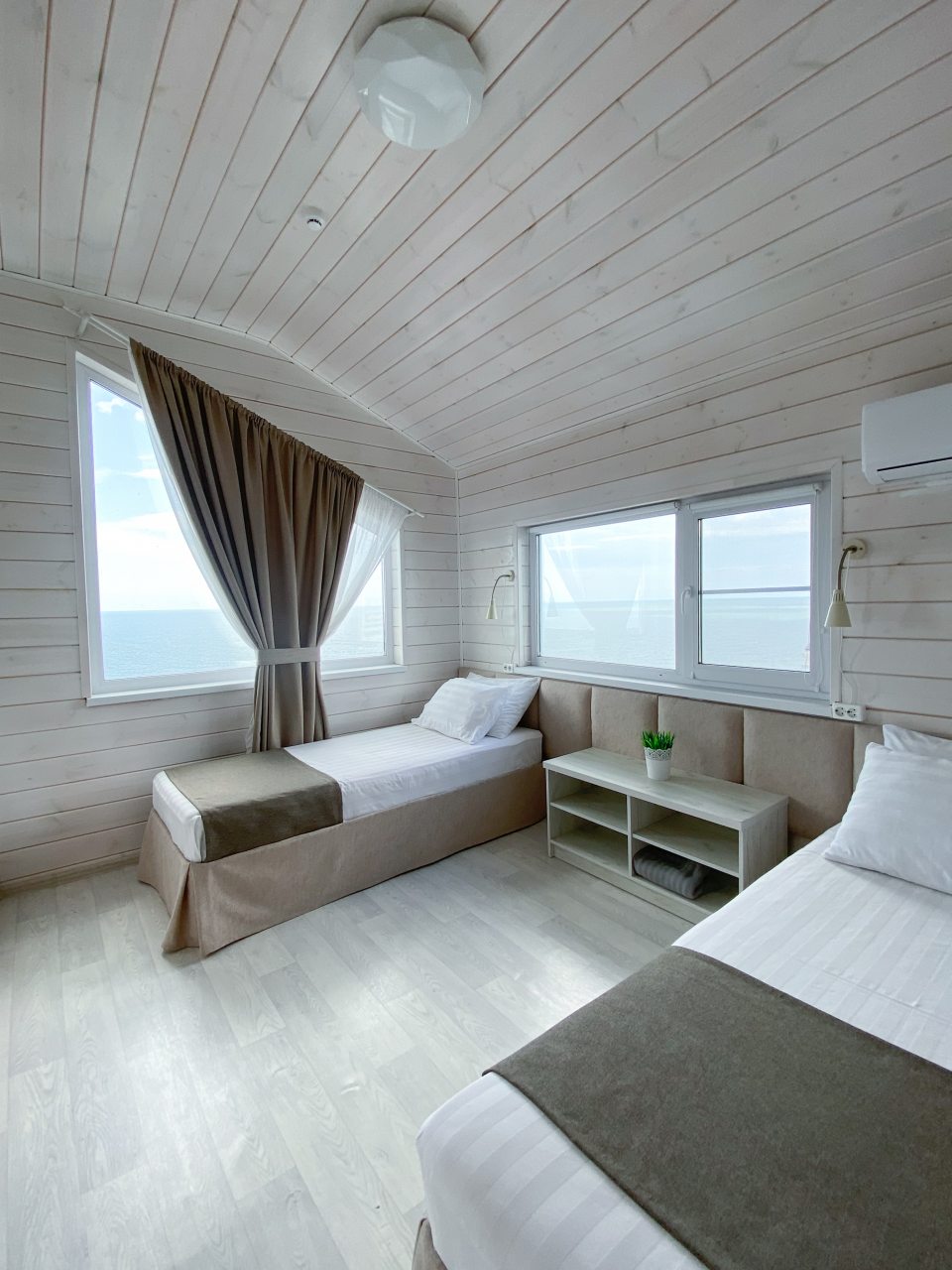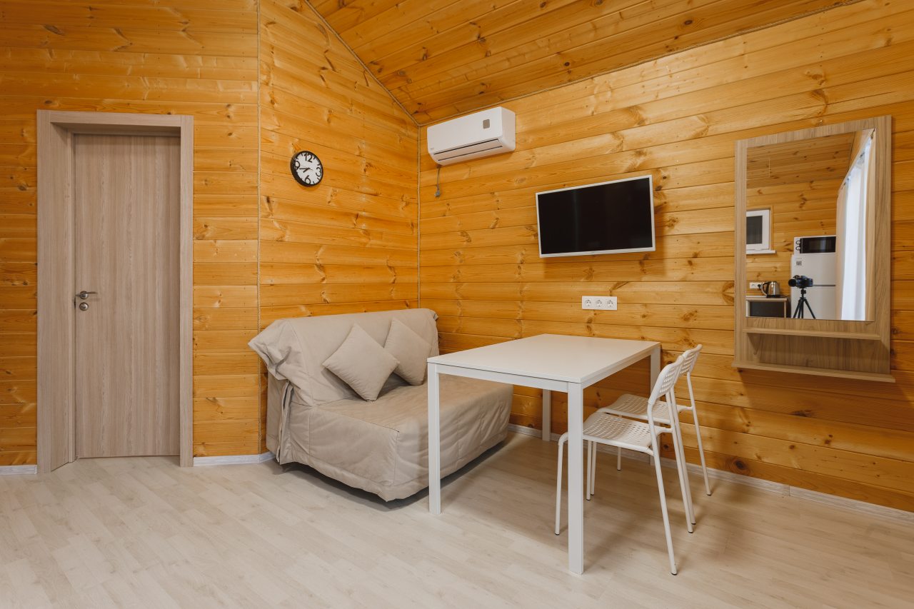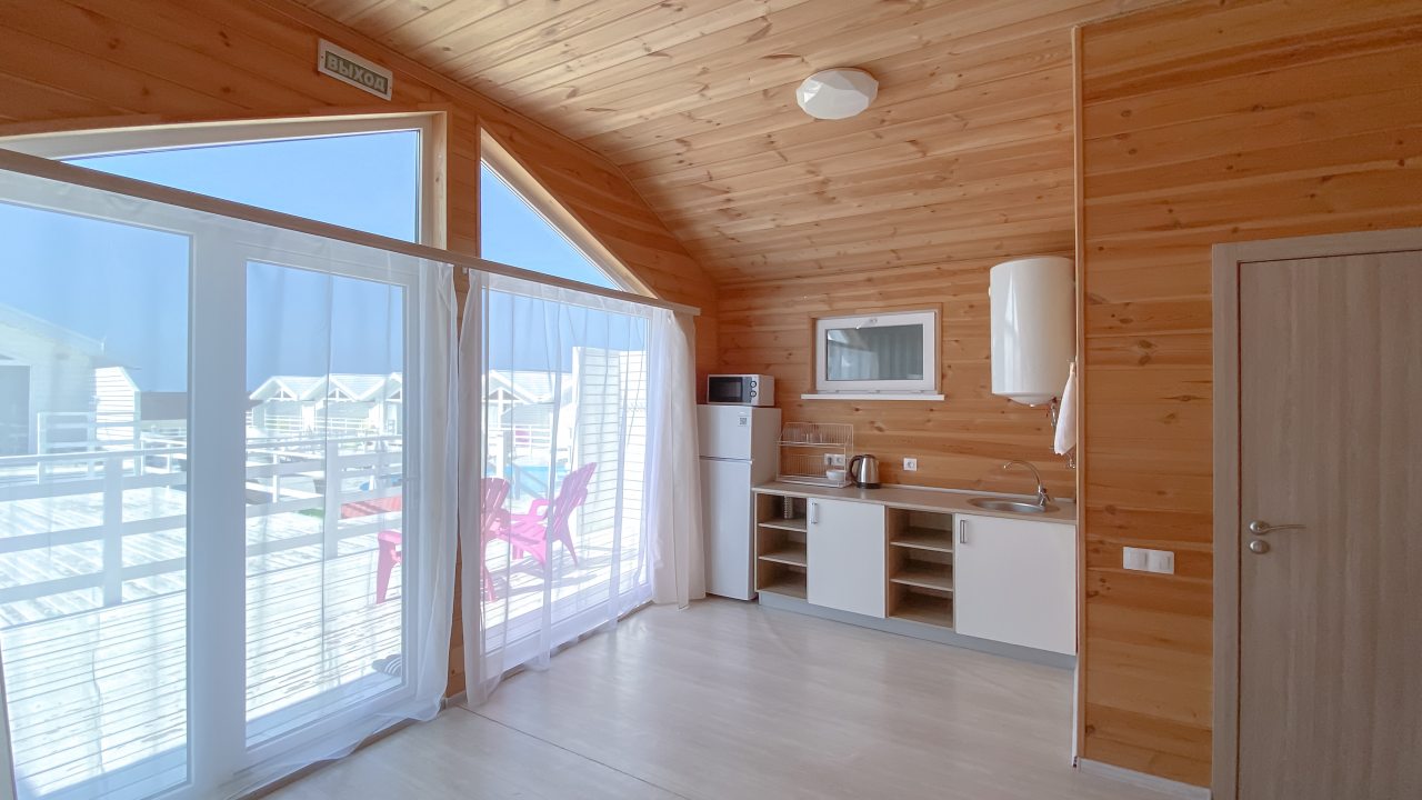 Объект располагает красивыми деревянными домиками на побережье Арабатского залива. Внутри выполнены в минималистичном стиле и оборудованы удобной мягкой мебелью, современным техническим оснащением, индивидуальной ванной комнатой. Вечерами с террасы можно наблюдать закаты.