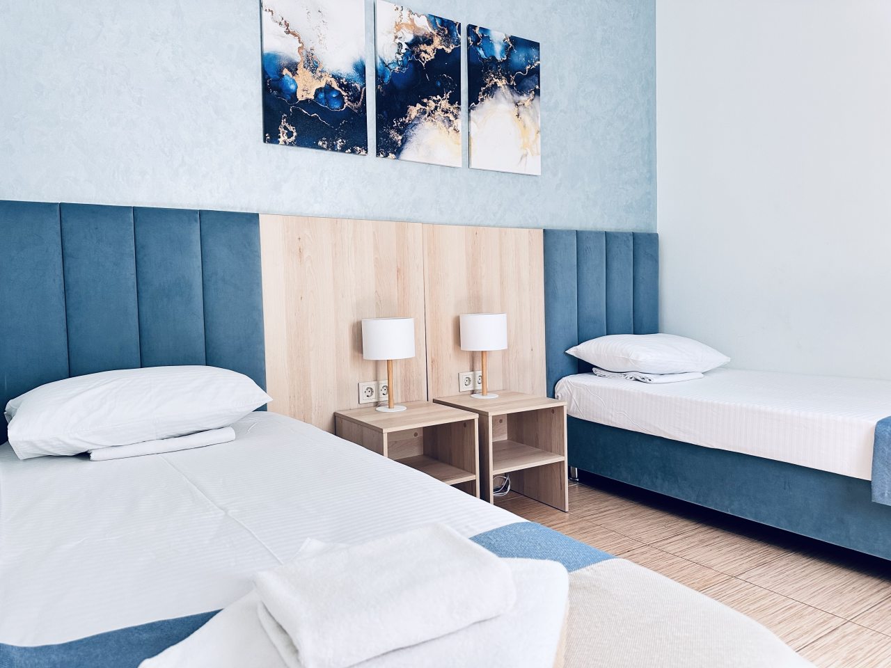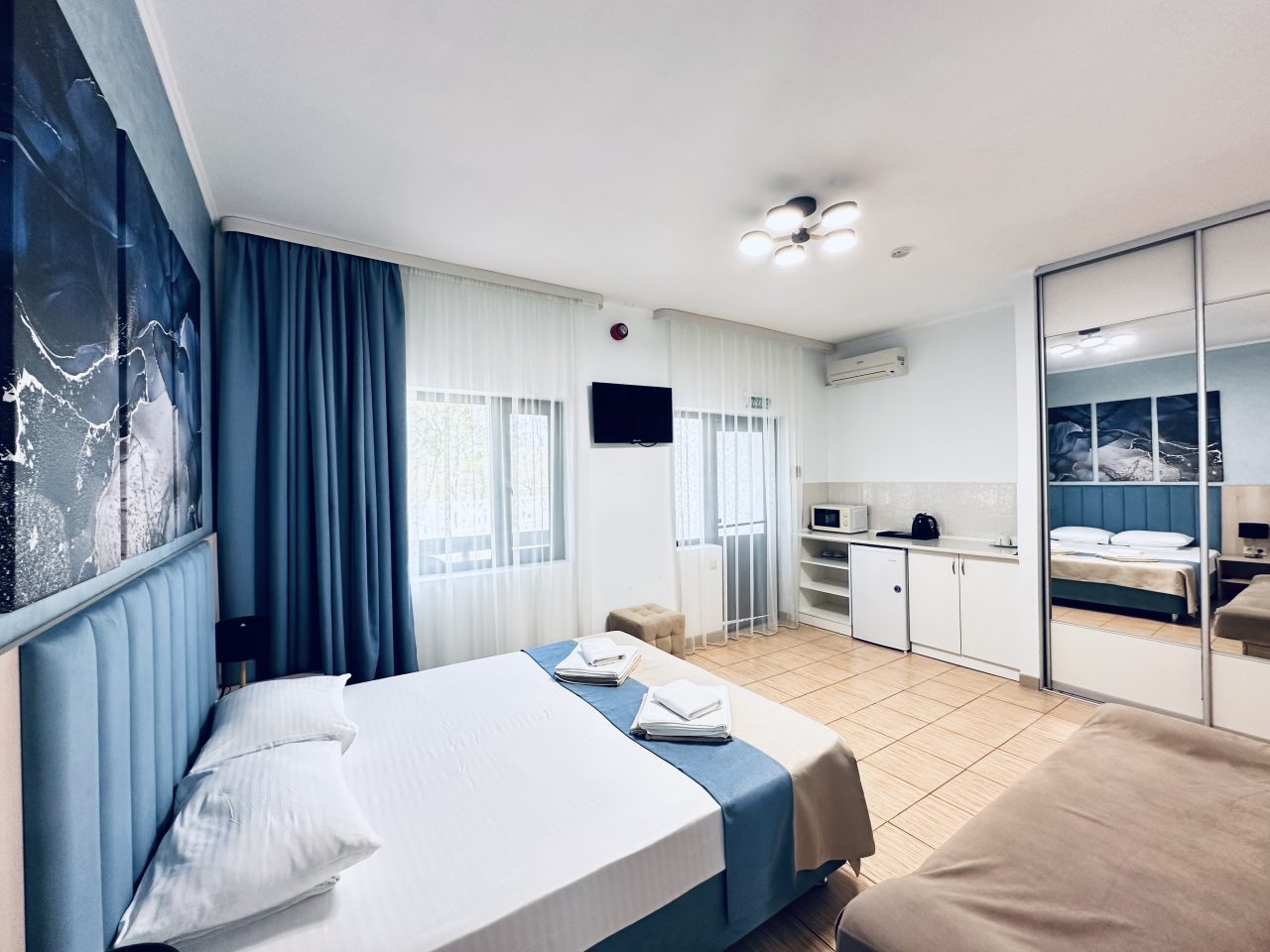 В номерах Стандартный двухкомнатный (3 места), Комфорт двухкомнатный (4 места) и Семейные апартаменты двухкомнатные (4 места), стоимость рассчитывается за номер в сутки. Стоимость доп. места индивидуальна для каждого номера, но при этом одинакова для взрослого и ребенка.