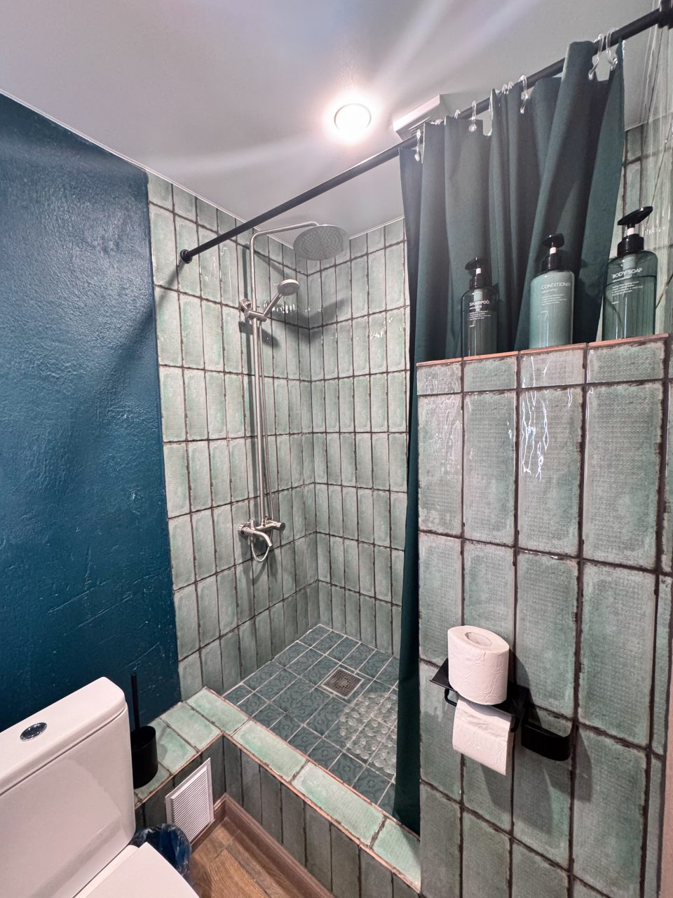 Из недостатков: минус — не хватило крючка для полотенца возле душа (но не упоминаю, как вы просили).