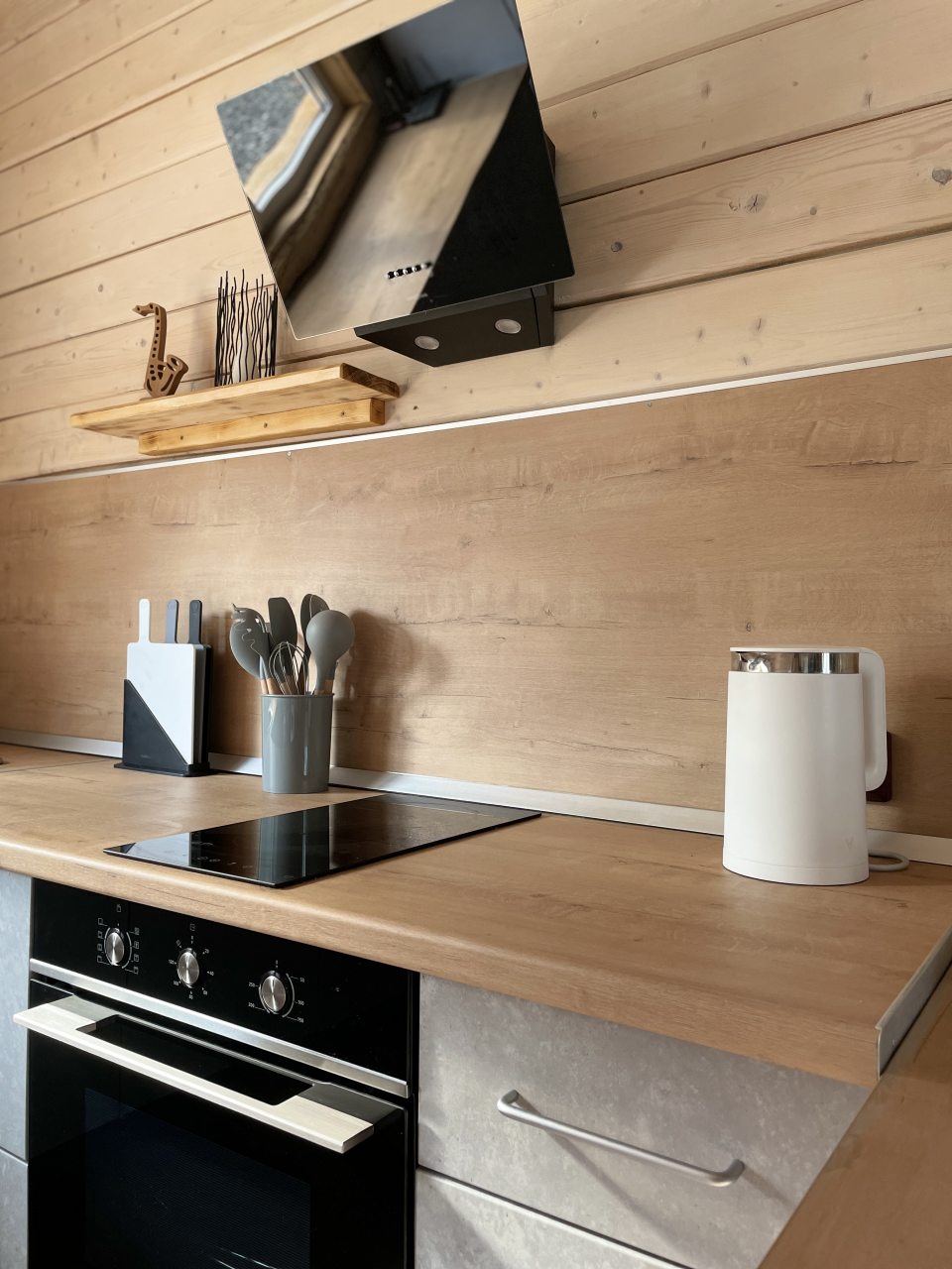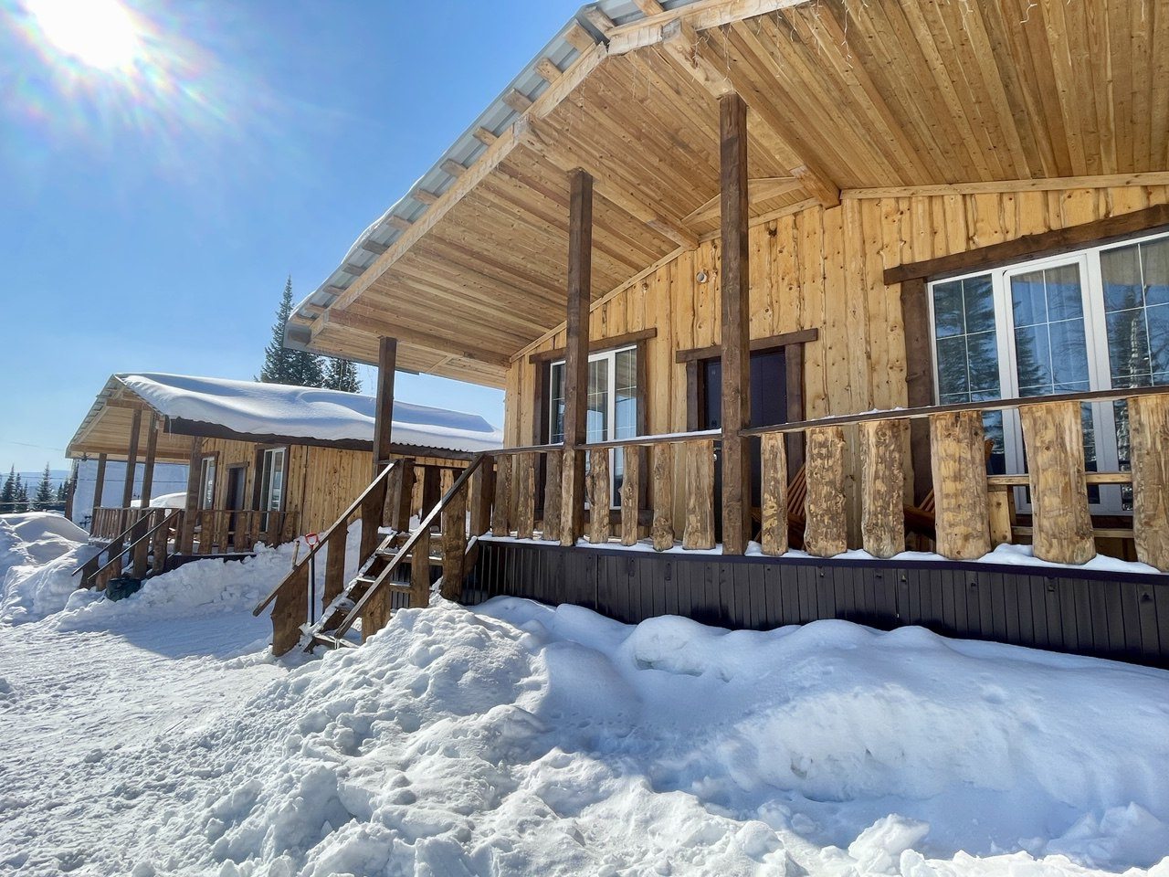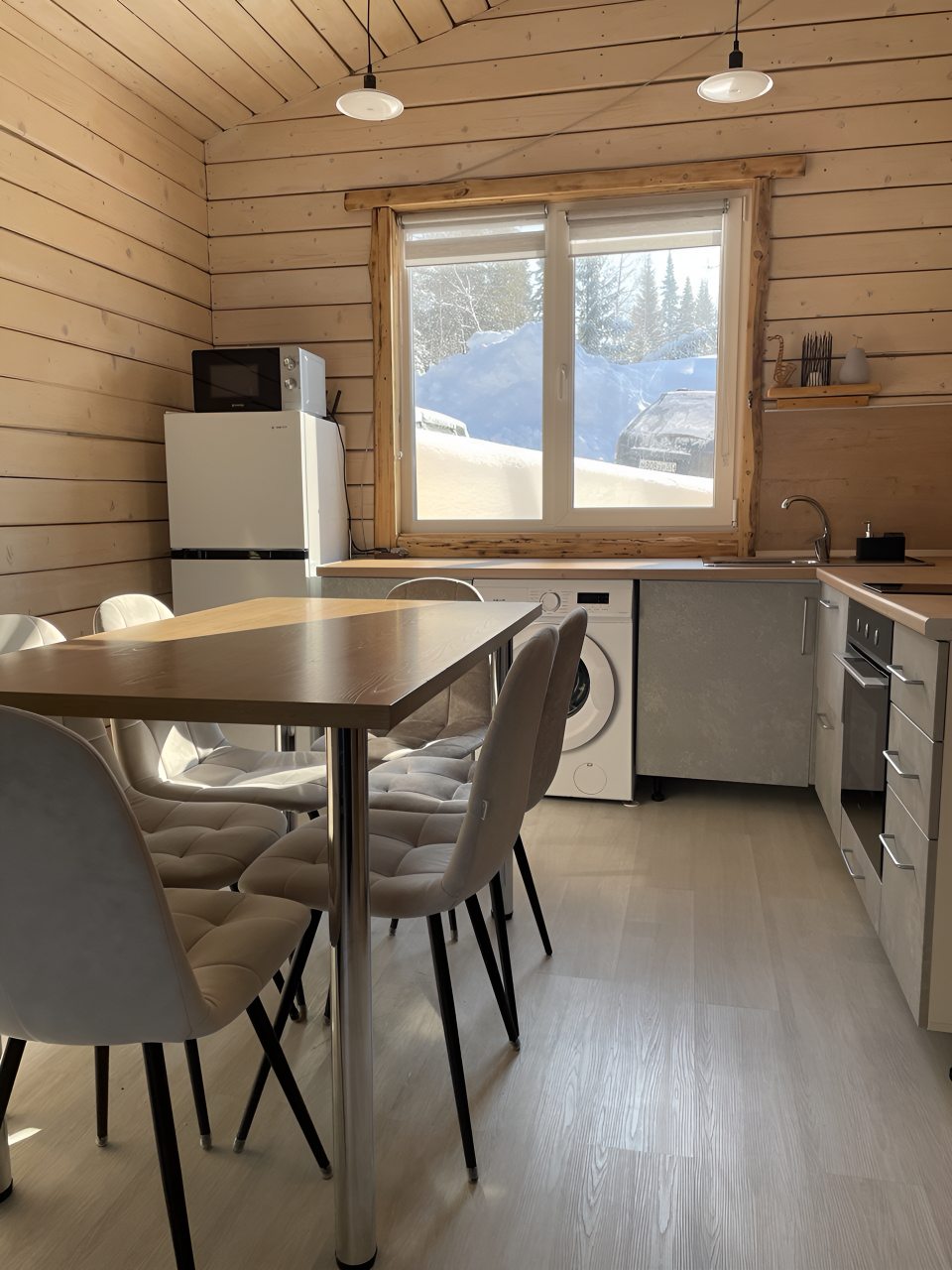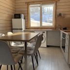 Отличные домики! Есть кухня, посуда, хороший интернет. Внутри тепло и уютно. Кровати удобные и места хватило всем. До подъемников добирались на машине, а пешком далековато конечно.