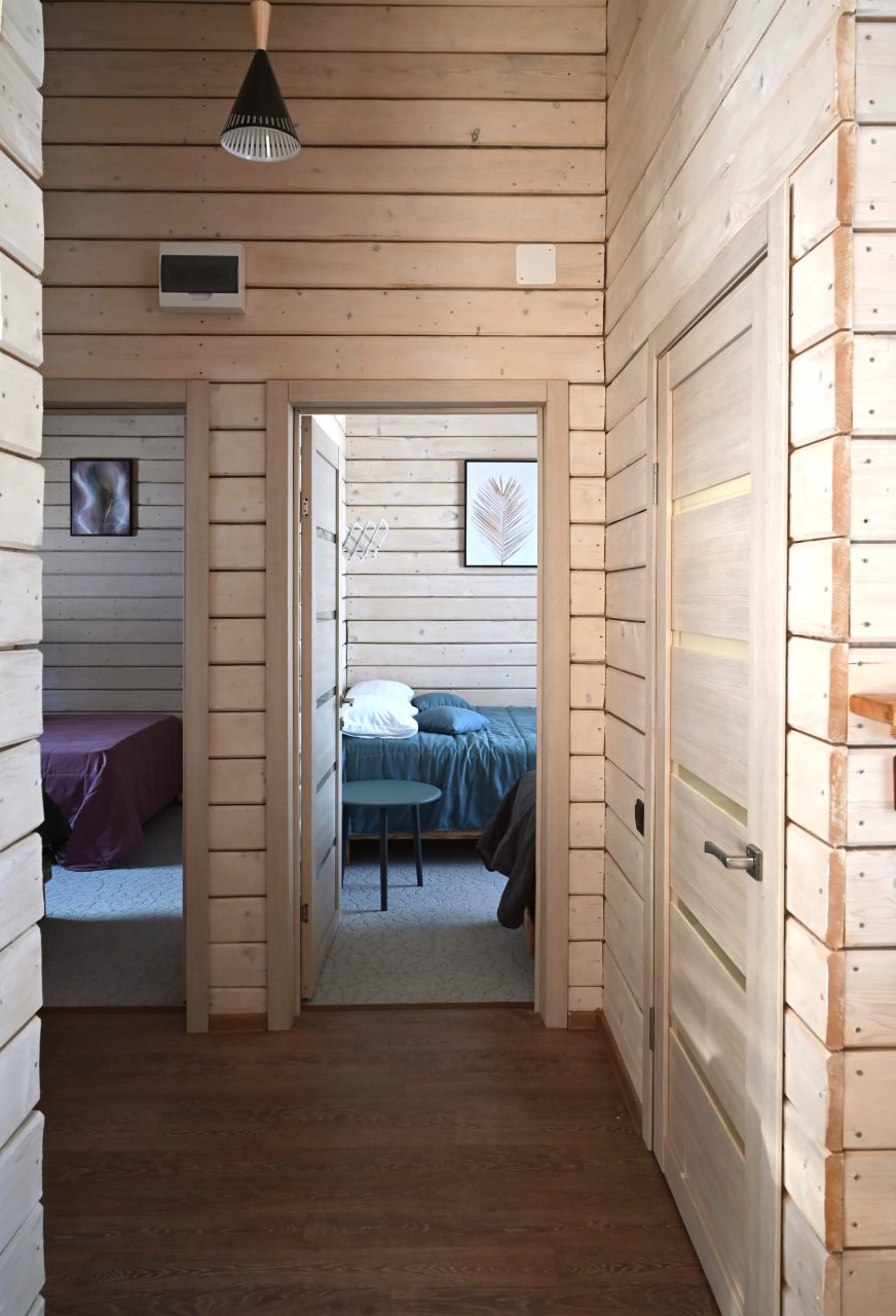 Дома, рассчитанные на проживание до 8 гостей, имеют панорамные окна с видом на гору «Зеленая», и сказочный лес. В домах есть две изолированные спальни, в каждой спальне 1 двуспальная кровать и 1 односпальная кровать, санузел, предоставляются постельное белье, полотенца, зубные наборы.
