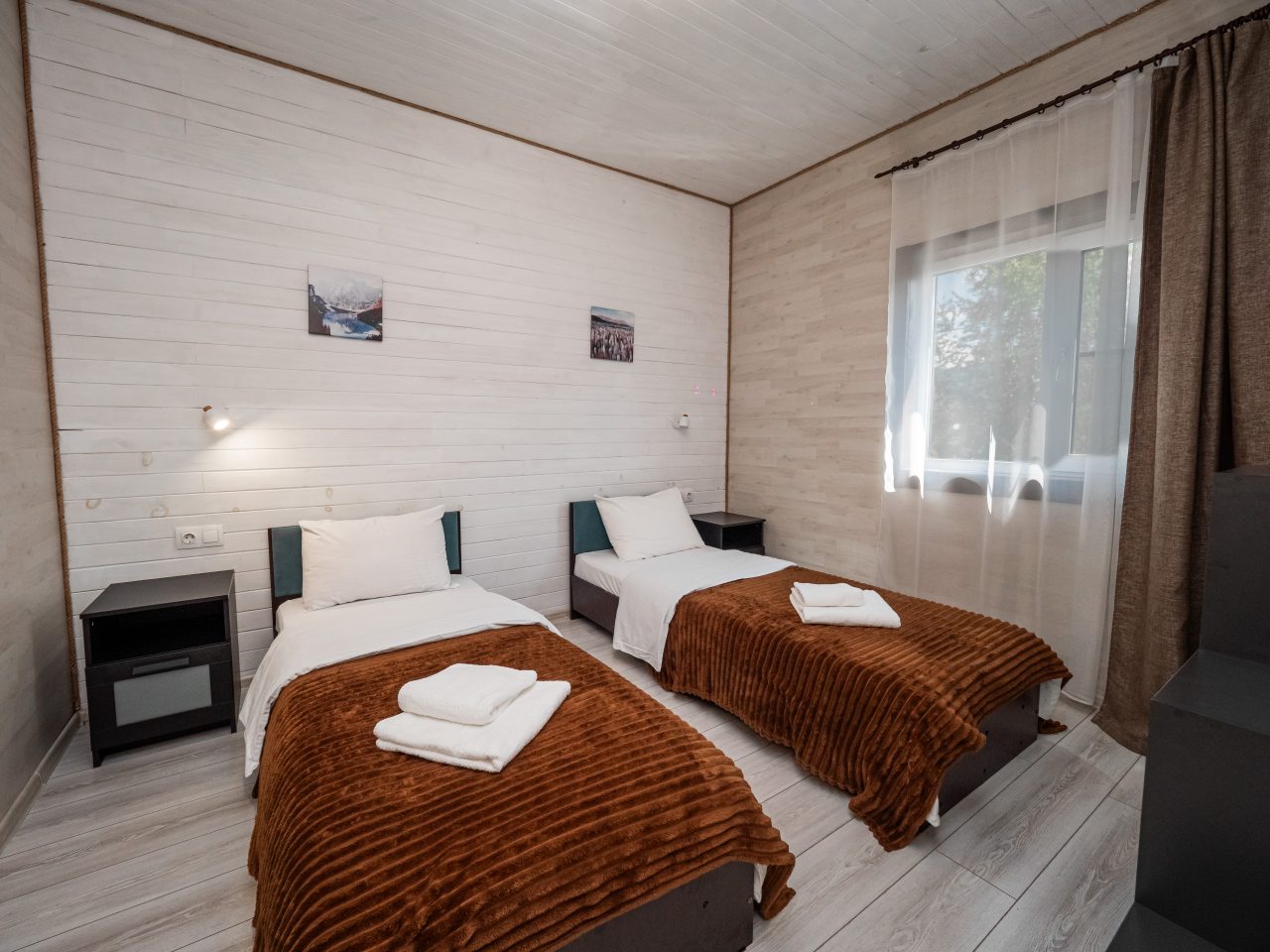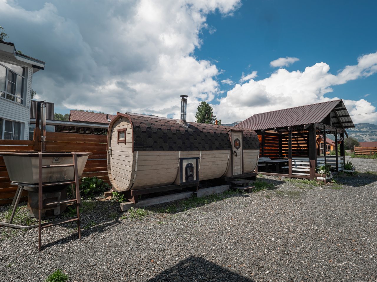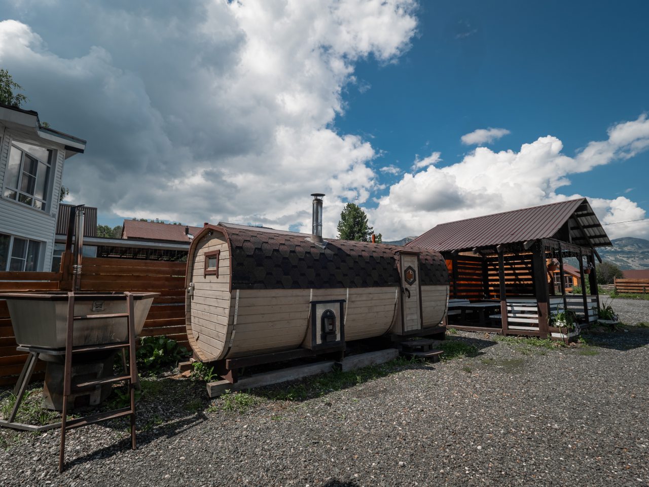 На территории имеются баня-бочка и чан для оздоровления, костровая зона, беседка с мангалом и качели приятного времяпрепровождения. В летнее время устанавливается батут и бассейн. Расстояние до канатной дороги составляет 1,5 км. До ближайшего аэропорта Новокузнецка — 121,9 км, до железнодорожного вокзала — 85,3 км.