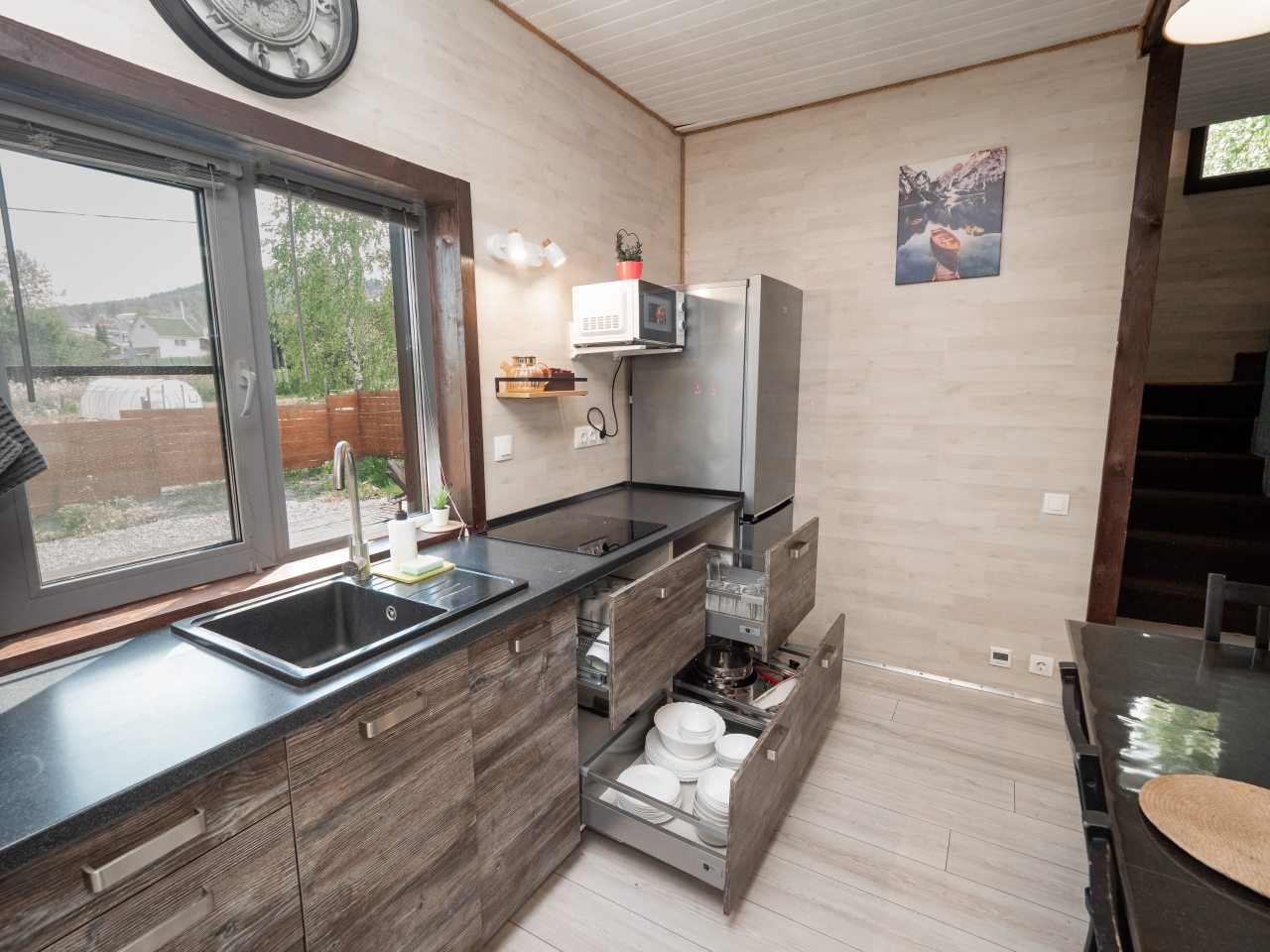 Просторная кухня и обеденная зоны позволят вам с комфортом готовить любимые блюда. В наличии как столовые приборы с посудой, так и посудомоечная машина, духовой шкаф, варочная панель, холодильник, мультиварка, микроволновая печь, чайник, кофемашина. В доступе гостей чай, кофе и сахар.