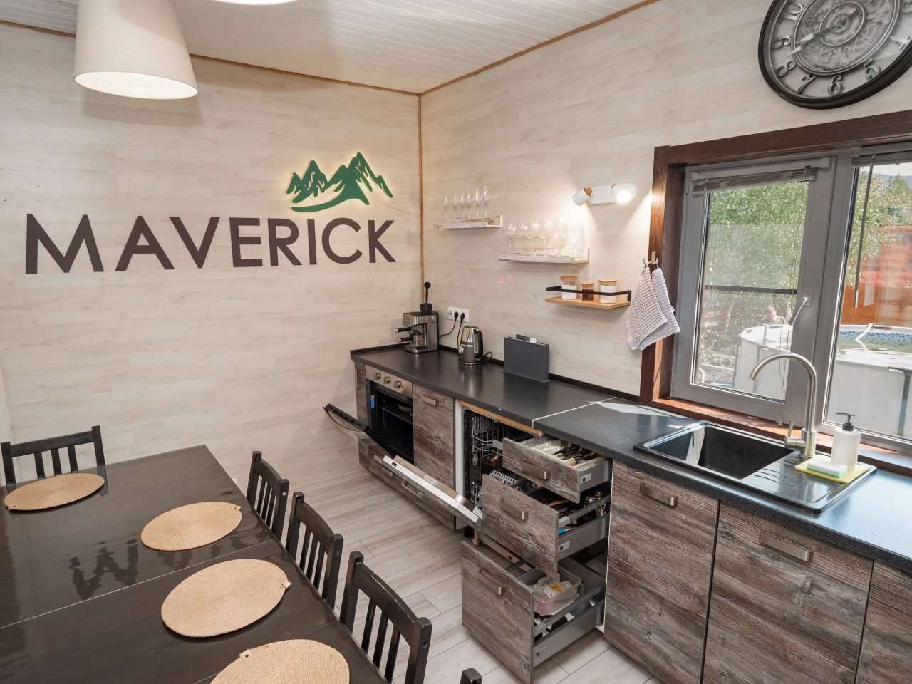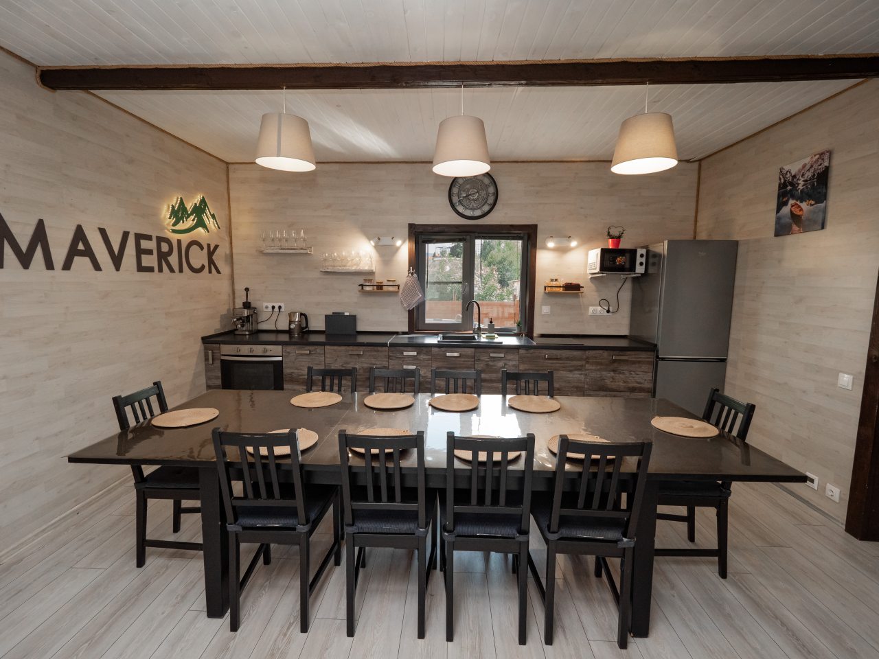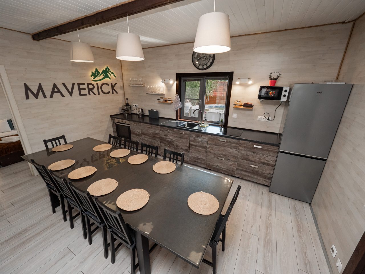 Заехали в «Maverick» с детьми и друзьями, чтобы провести здесь последние летние деньки. Остались довольны все. Конечно, больше всего нам понравились баня и чан. Шале, безусловно, тоже замечательное. На кроватях всем спалось отлично. Кухонная зона — отдельная благодарность. Очень порадовало наличие посудомоечной машины и кофемашины. Просторно и комфортно. Минусов не нашли. Благодарим.