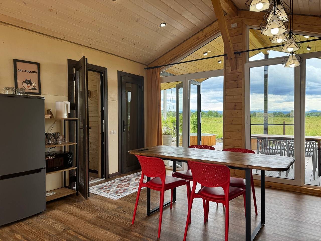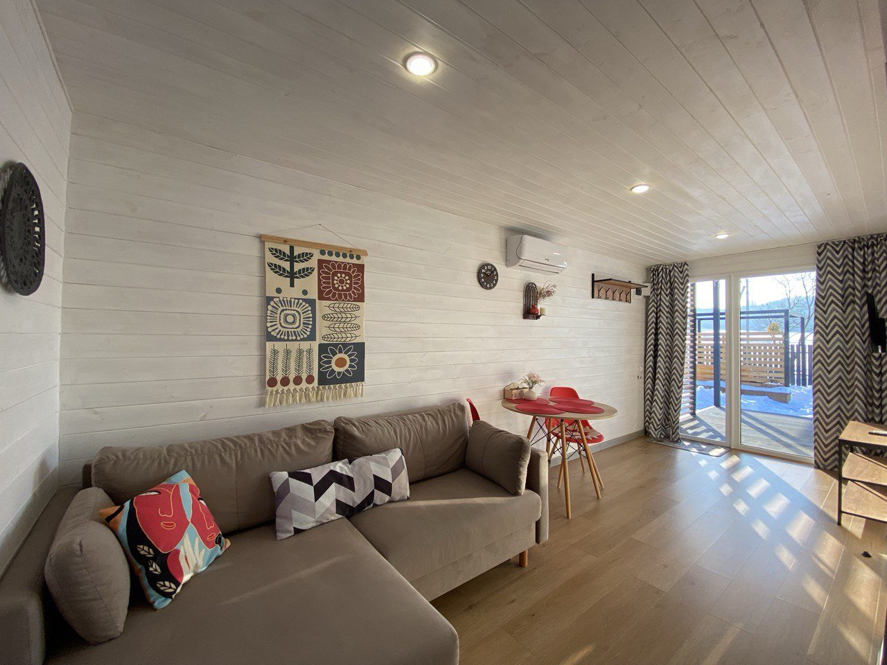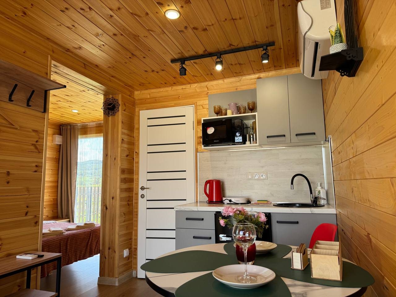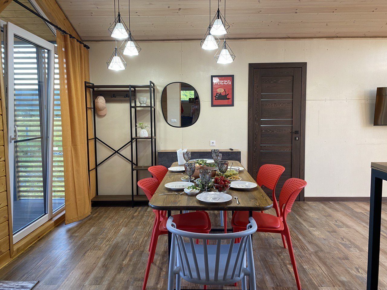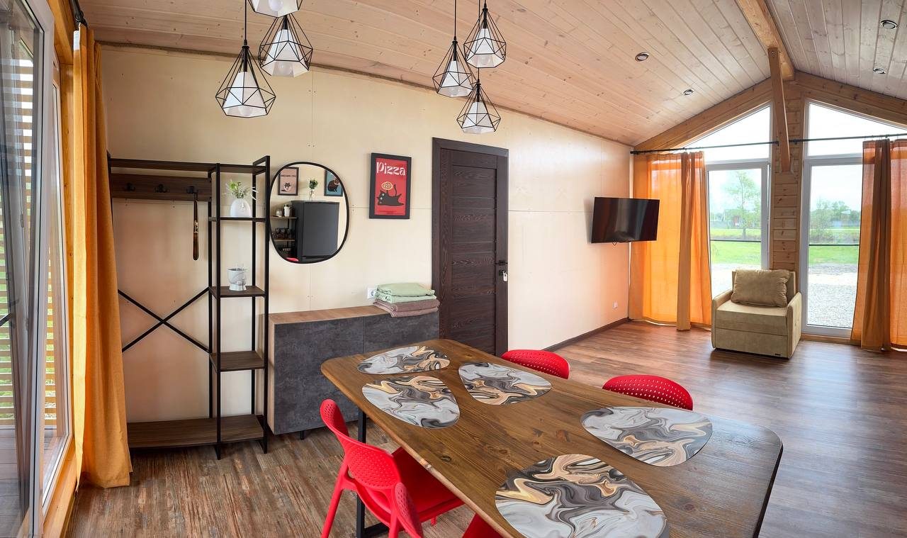 К размещению гостей предлагаются уютные и просторные домики с видом на горы. Каждый из них имеет уникальный дизайн и планировку. Для удобства в домах предусмотрена вся необходимая техника, мебель, спальные места, ванная комната. Также проживающие могут воспользоваться доступом в интернет.