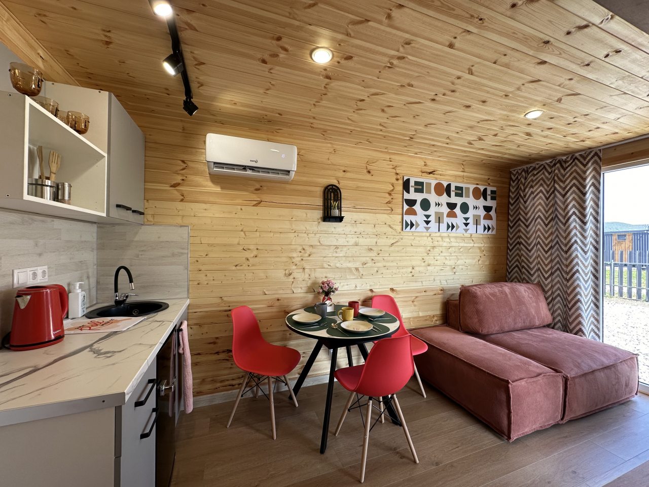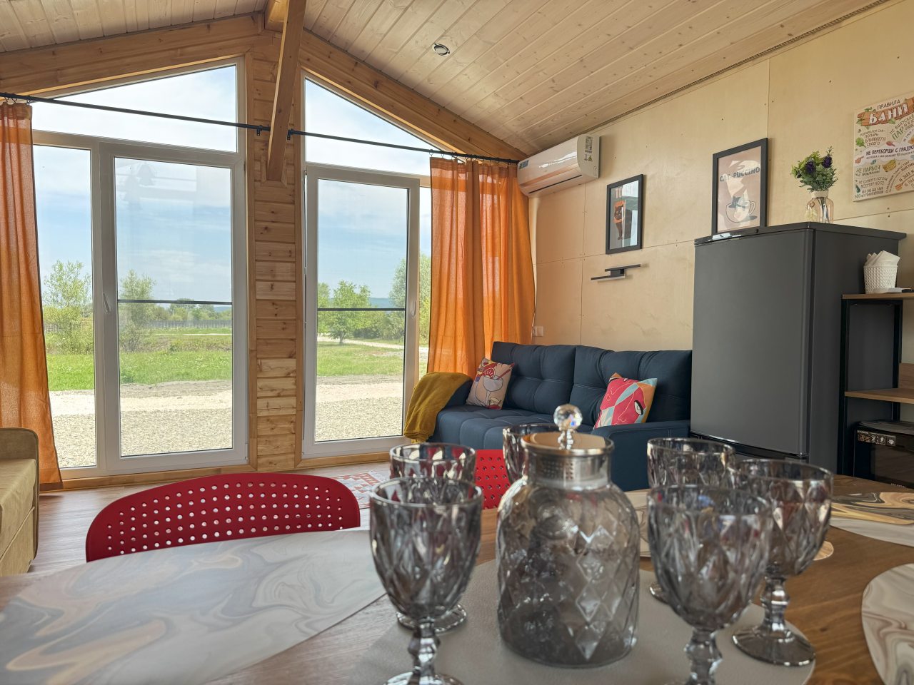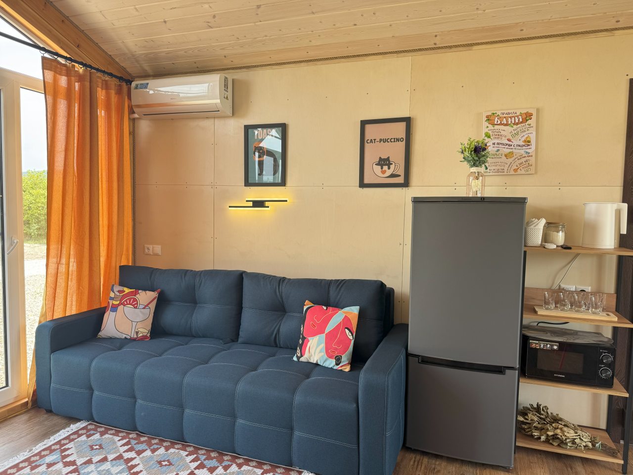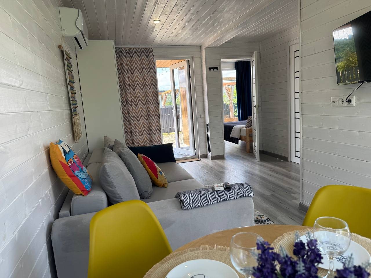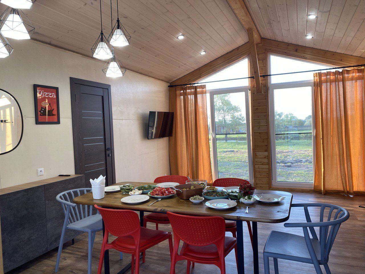 К размещению гостей предлагаются уютные и просторные домики с видом на горы. Каждый из них имеет уникальный дизайн и планировку. Для удобства в домах предусмотрена вся необходимая техника, мебель, спальные места, ванная комната. Также проживающие могут воспользоваться доступом в интернет.