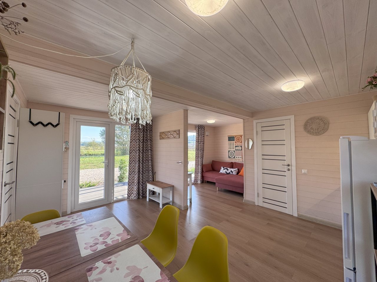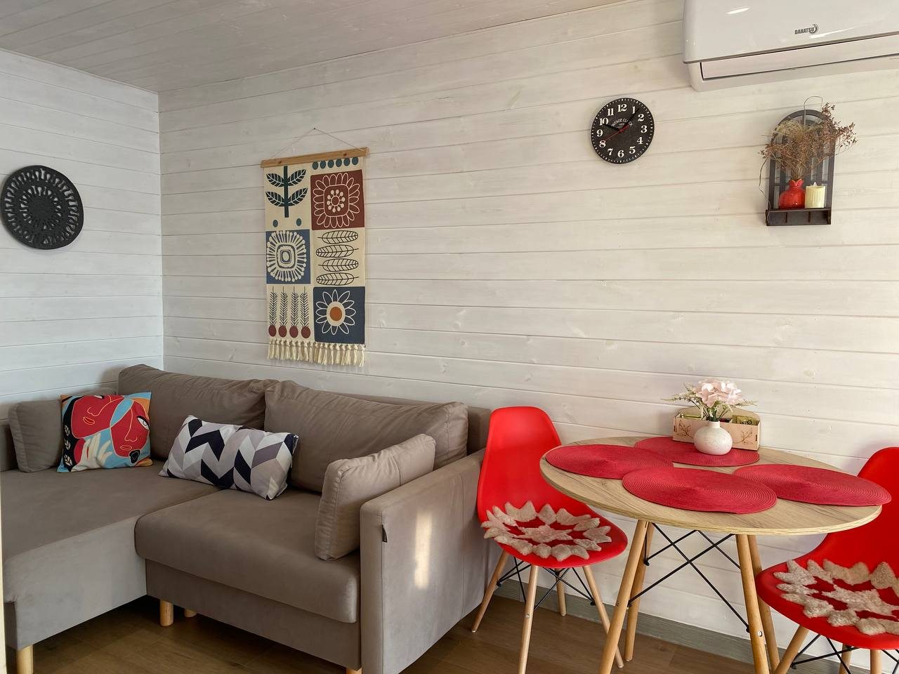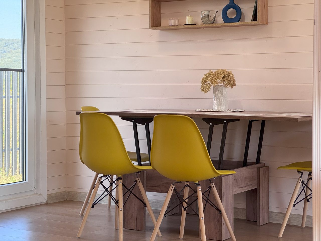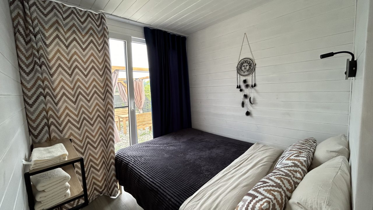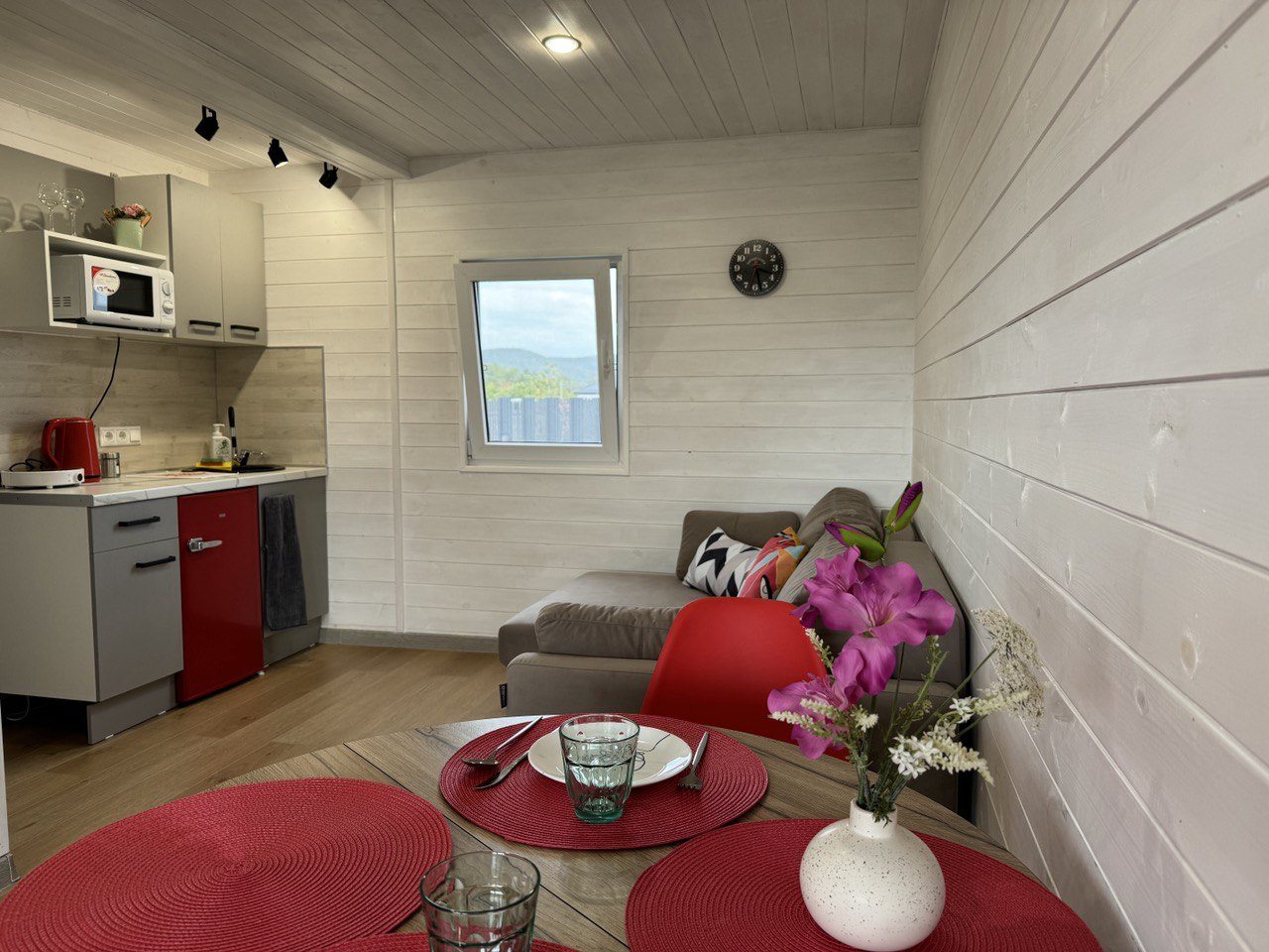 К размещению гостей предлагаются уютные и просторные домики с видом на горы. Каждый из них имеет уникальный дизайн и планировку. Для удобства в домах предусмотрена вся необходимая техника, мебель, спальные места, ванная комната. Также проживающие могут воспользоваться доступом в интернет.