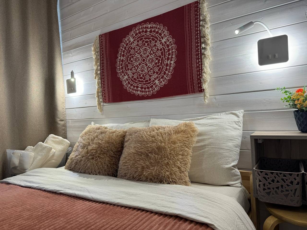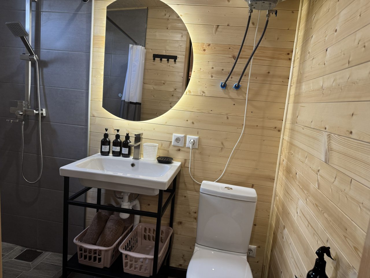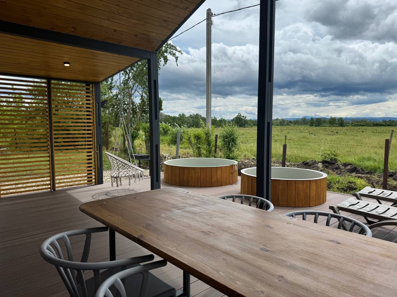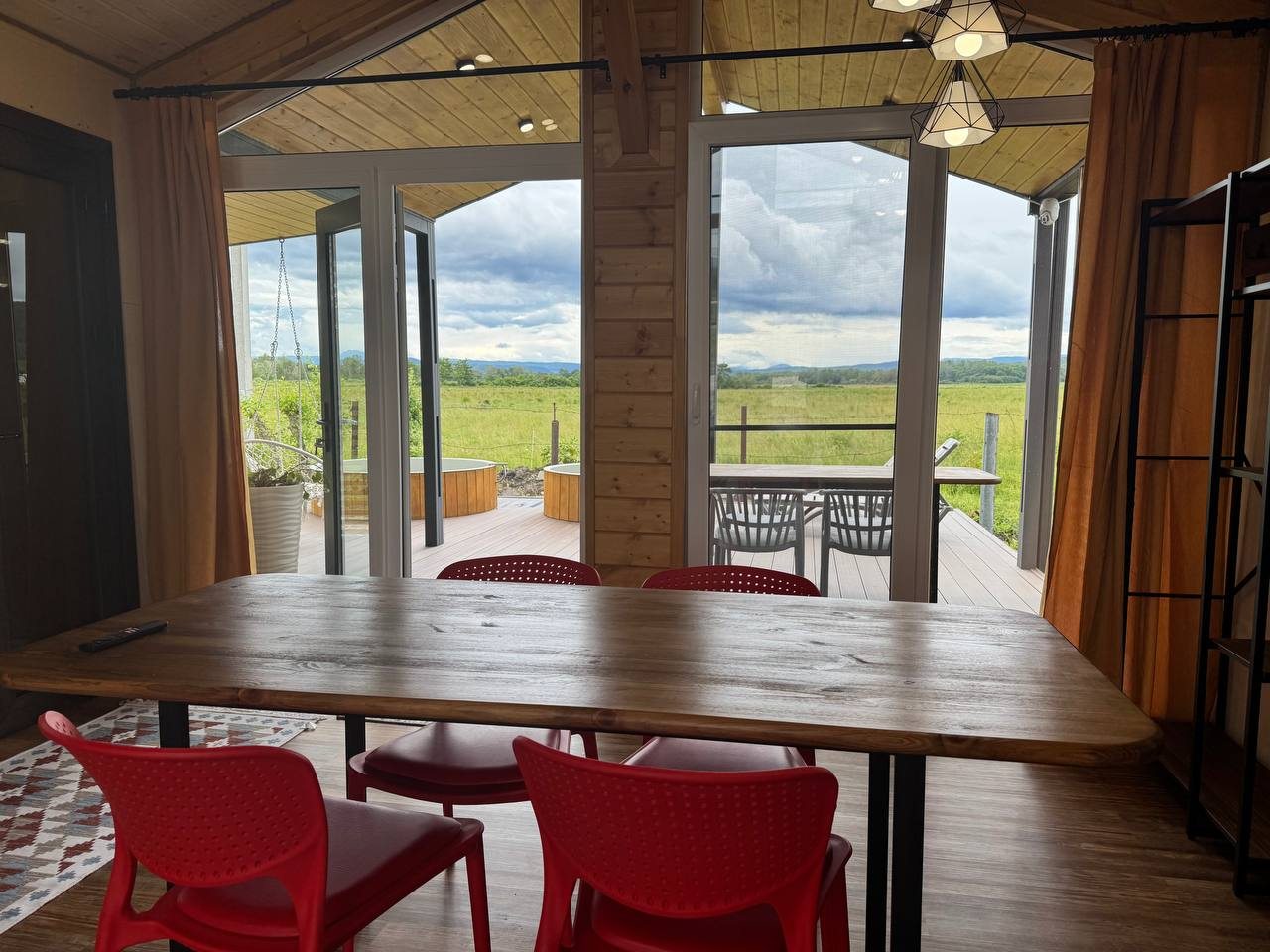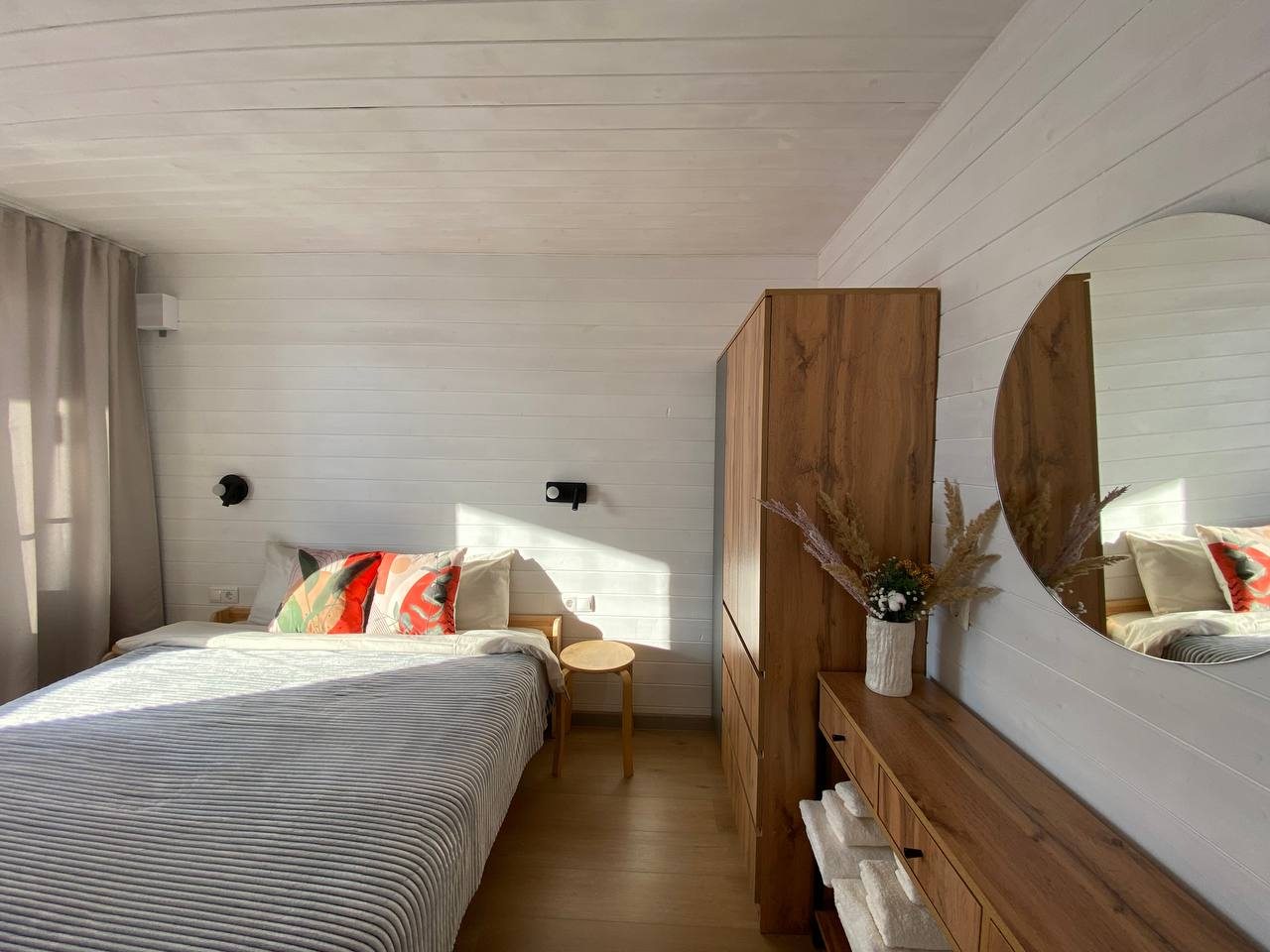 К размещению гостей предлагаются уютные и просторные домики с видом на горы. Каждый из них имеет уникальный дизайн и планировку. Для удобства в домах предусмотрена вся необходимая техника, мебель, спальные места, ванная комната. Также проживающие могут воспользоваться доступом в интернет.
