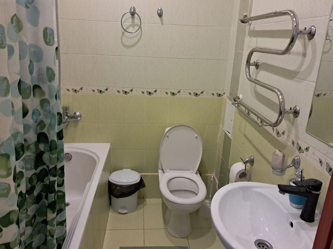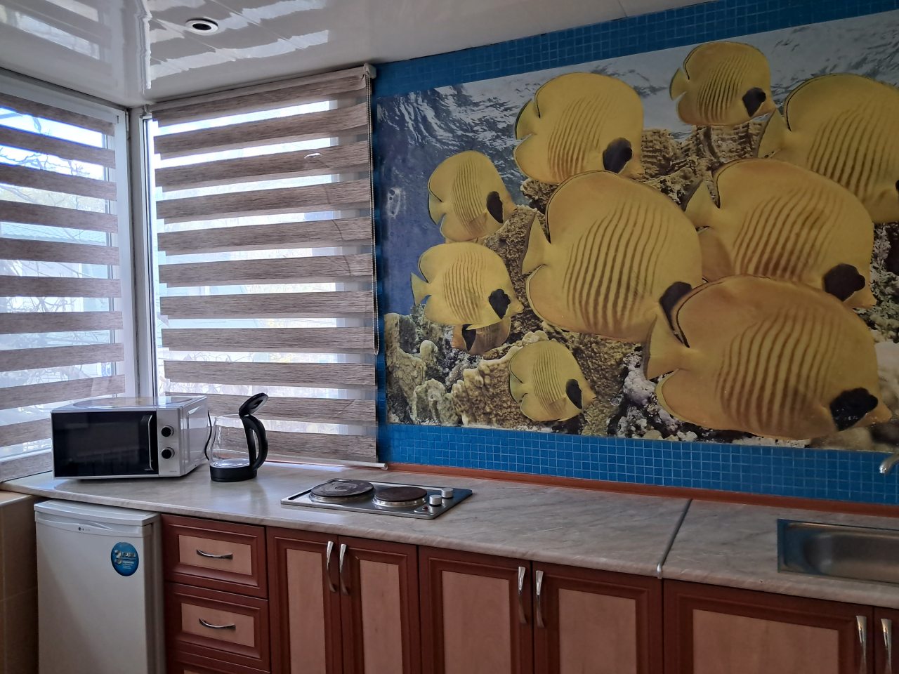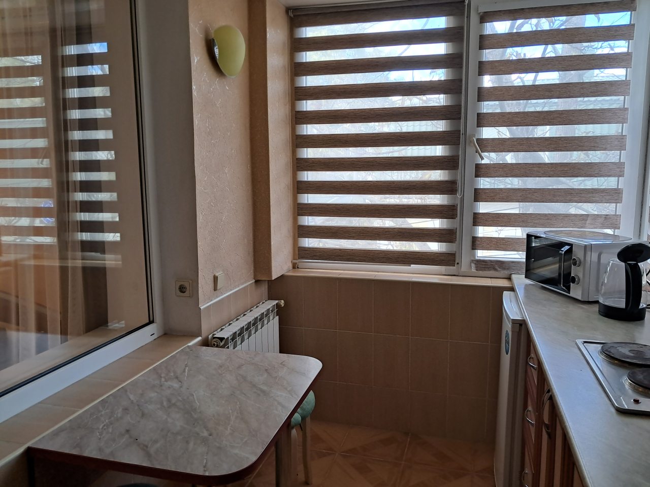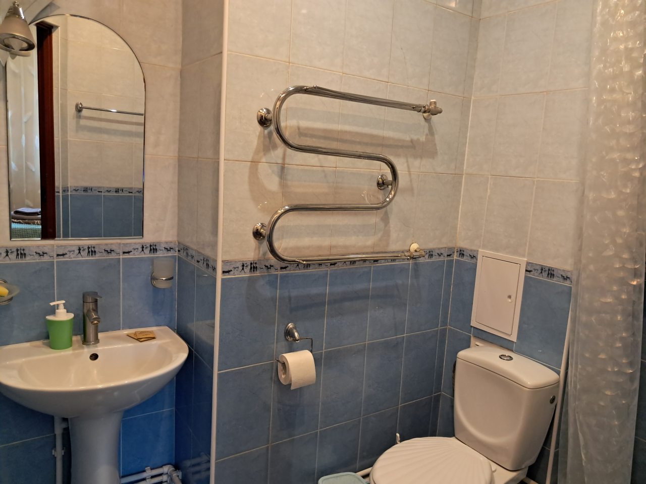 Хорошее местоположение. Приветливые сотрудники. Чисто. Есть холодильник, микроаолновка, чайник. Шампунь, мыло. Мы брали на одну ночь. Цена качество.
