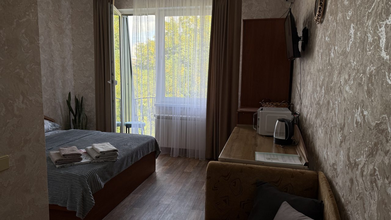 Отель недалеко от жд вокзала, нам нужно было только переночевать, дальше ехали в Симеиз.Персонал приветливый. Рядом парк, сходили погуляли утром в тени плавучих ив,красотища.