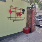 Есть вай-фай.Рядом магазинчик и есть кофейни.Рядом есть храм(но колокол вас разбудит в семь утра))