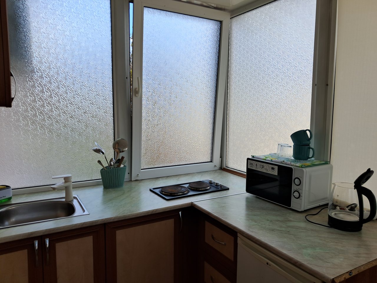 Из недостатков: уборка "хромает"-при заселении в душе были невыкинуты "обрывки"упаковки одноразовых шампуня-геля для душа" от прежних постояльцев.Надеюсь это единичный случай)). И -будет замечательно ,если добавите губку для посуды(у нас был номер с кухней).А так посуда вся в наличии.