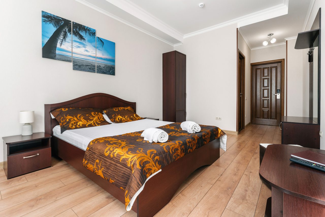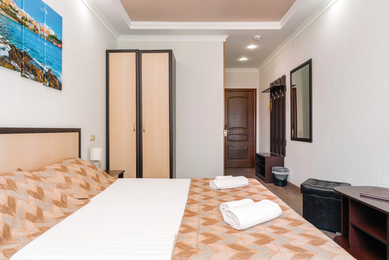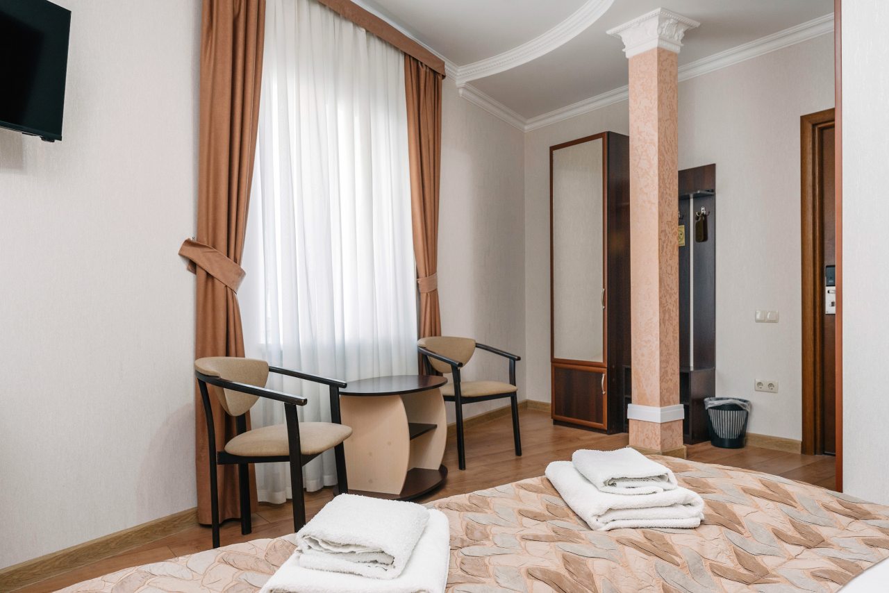 В номерном фонде представлено пять категорий. Все они оформлены в классическом стиле и везде установлены кондиционеры. Также в распоряжение гостей попадает телевизор с плоским экраном и ванная комната, в которой есть фен и бесплатные средства личной гигиены.