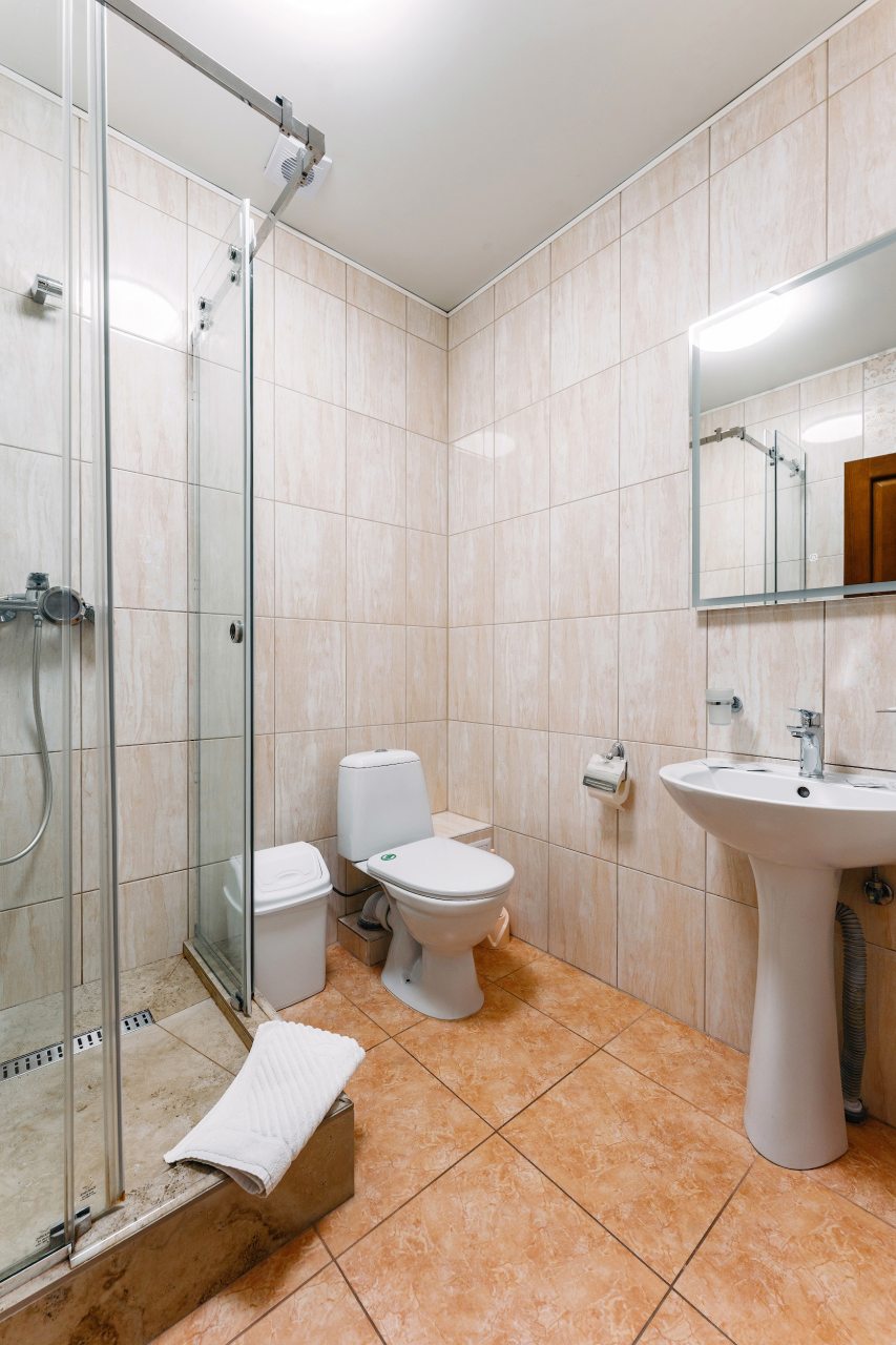Чисто, ванная комната с хорошей душевой. Очень удобный матрас и подушки. Качественное белье, но один пододеяльник был с дыркой ).