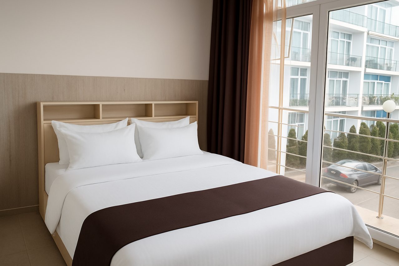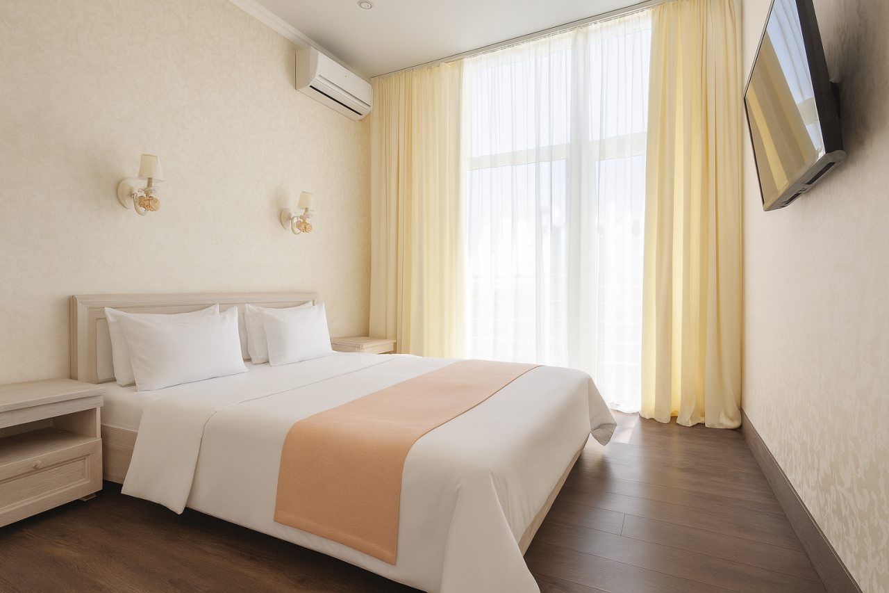 Апартаменты «Deluxe Apartment Бульвар Надежд 6/1» находятся в Сириусе, на первой береговой линии Чёрного моря. Одним из преимуществ является расположенная рядом развитая инфраструктура и транспортная доступность.
