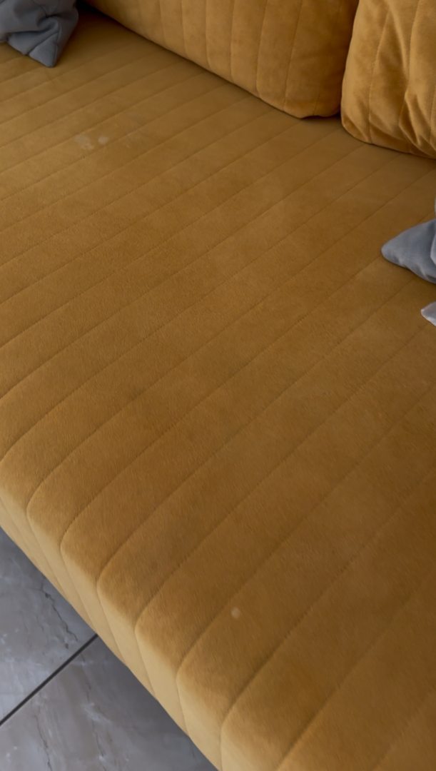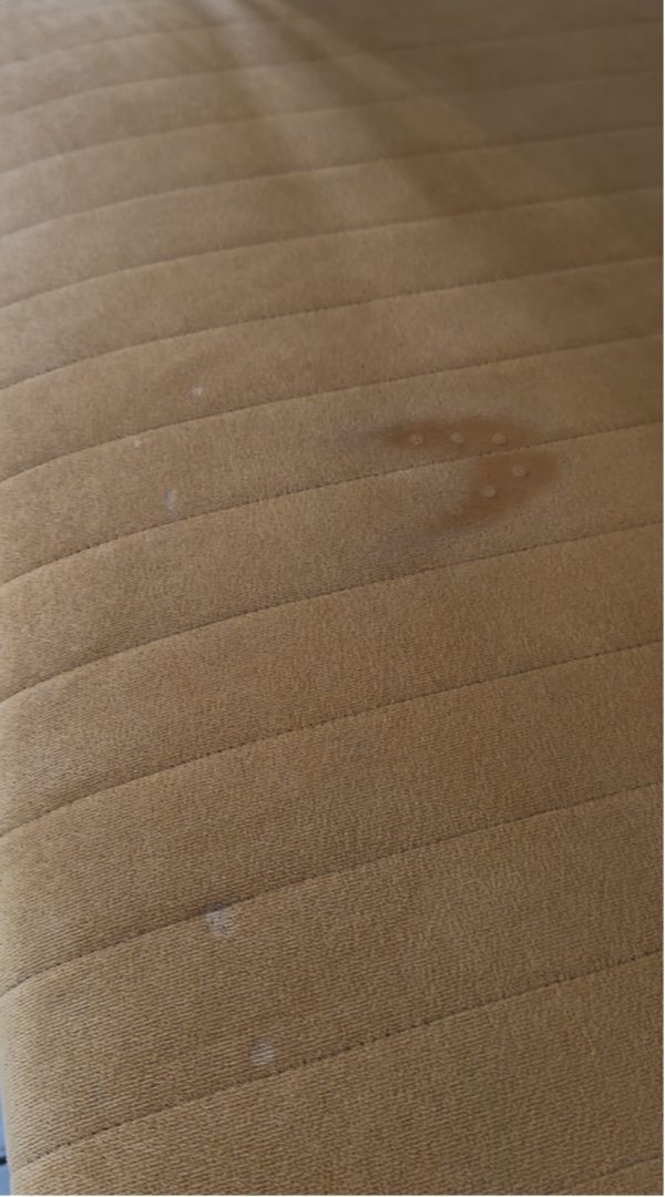 на матрасе пятно от чьего-то ужина, на кровати и диване пятна