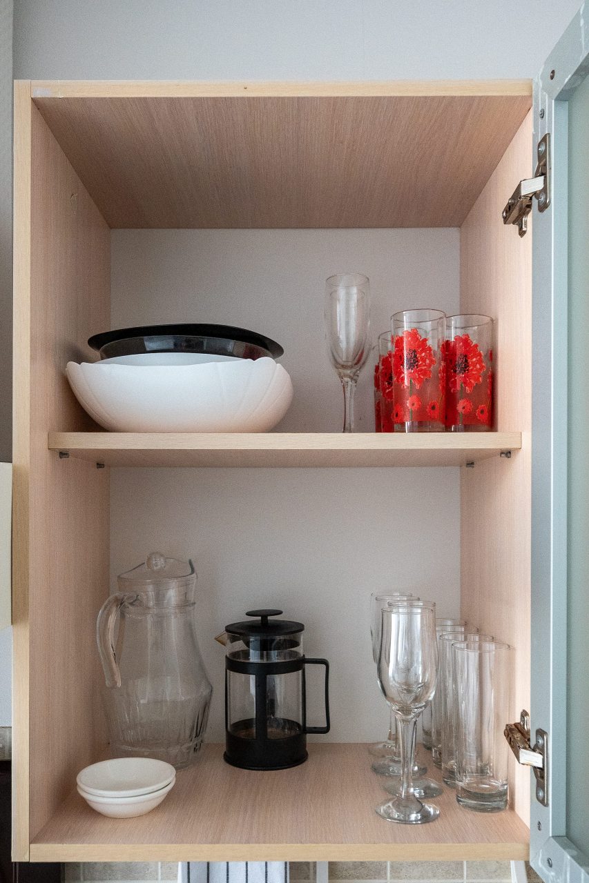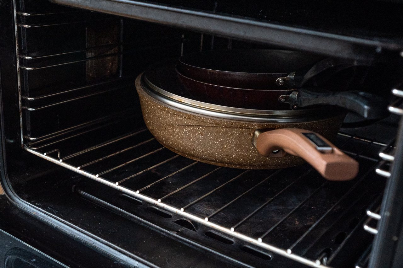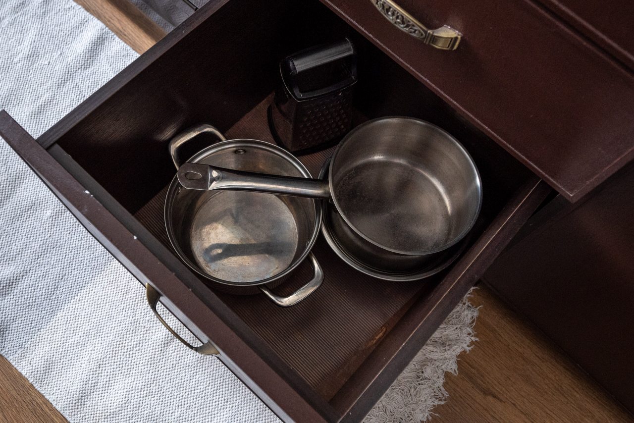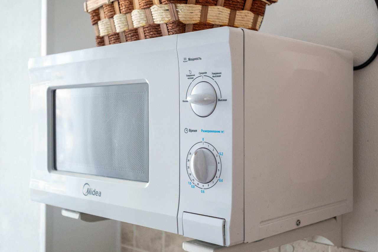 На кухне есть все для приготовления пищи: газовая плита с духовкой, СВЧ печь, холодильник. Также имеются кастрюли, антипригарная сковорода.