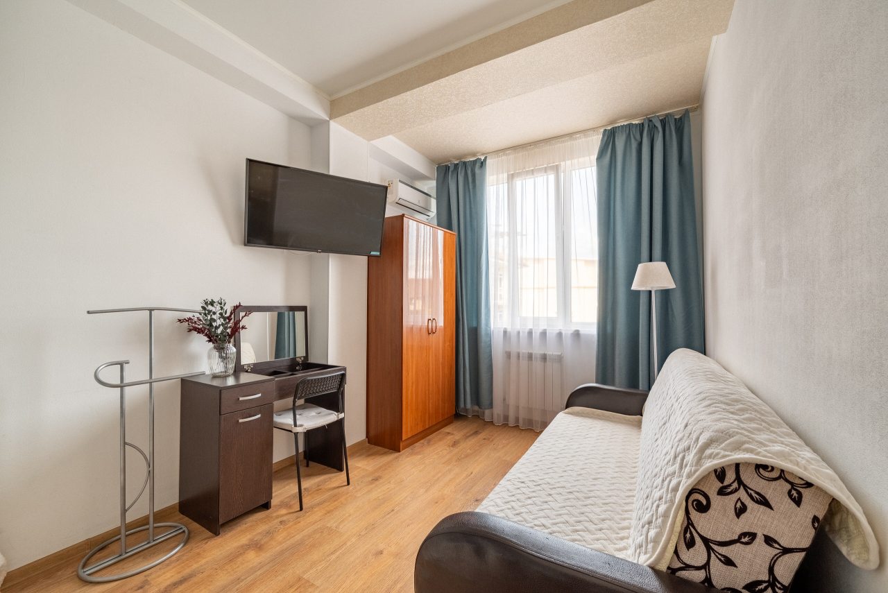 В квартире сможет разместиться семья или компания друзей до четырёх человек. Среди удобств имеется ортопедический матрас, сплит-система, Wi-Fi, телевизор и собственная ванная комната.