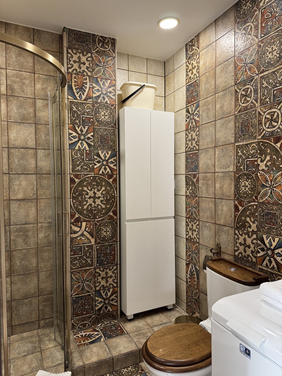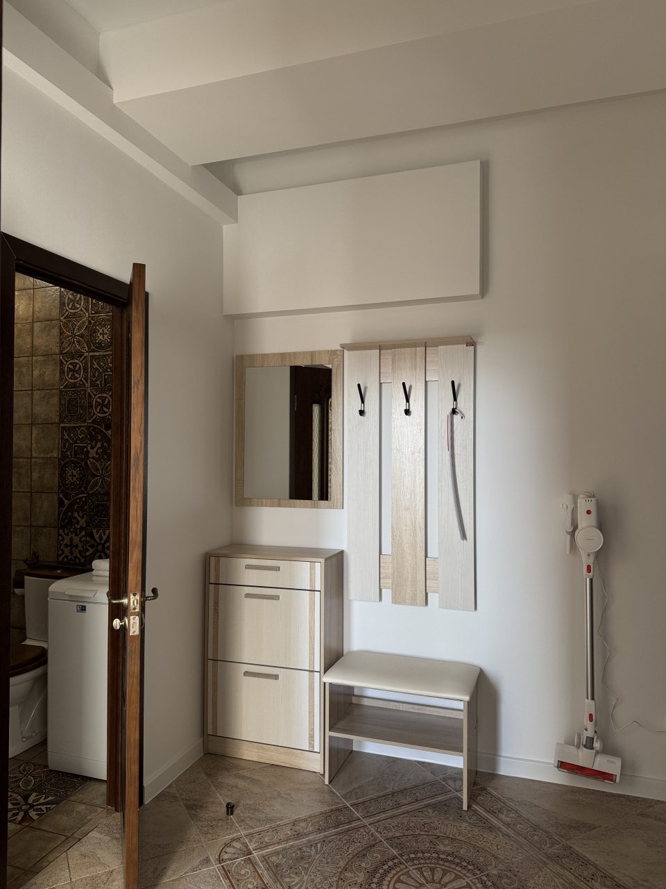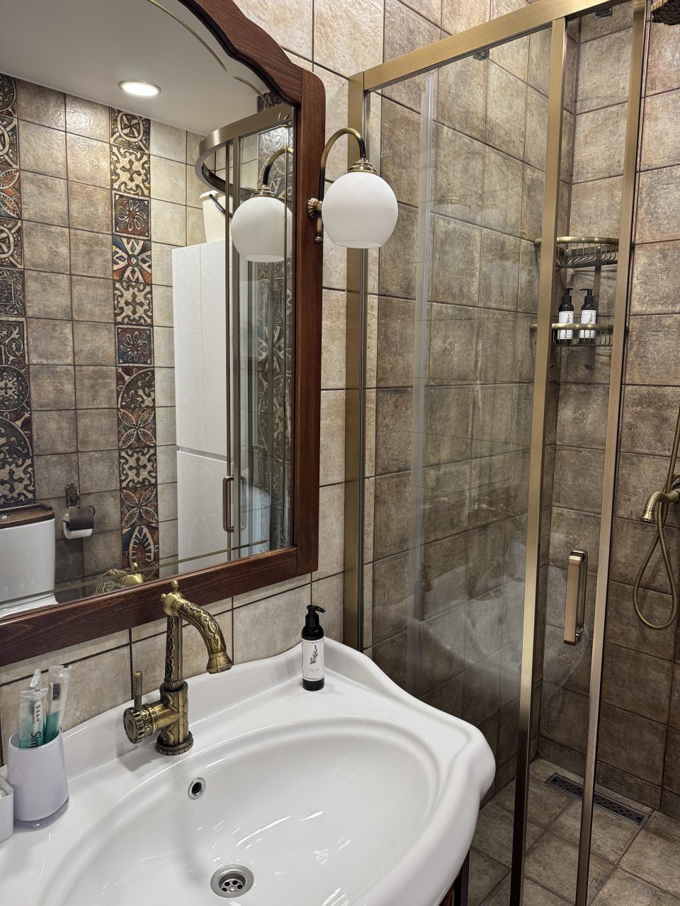 Внутри вас ожидает удобная двуспальная кровать, мягкое кресло с лампой, телевизор, кондиционер, вместительный шкаф, комод, а также санузел с душевой, стиральной машиной и средствами для личной гигиены.