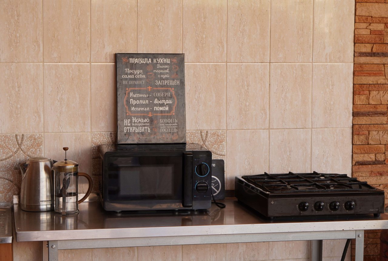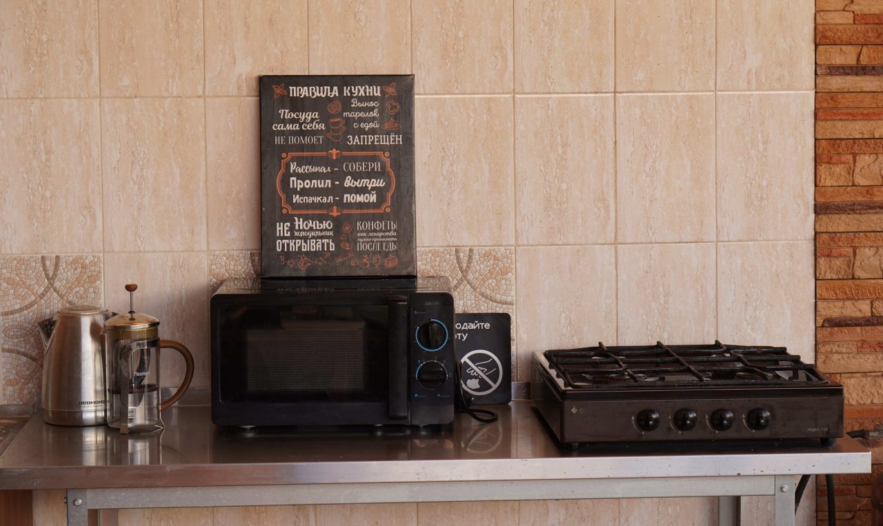 В номерах есть холодильник и чайный набор. На свежем воздухе оборудована мангальная зона с беседками и кухня со всем необходимым для приготовления. Ближайшее кафе в 1,2 м от гостевого дома.