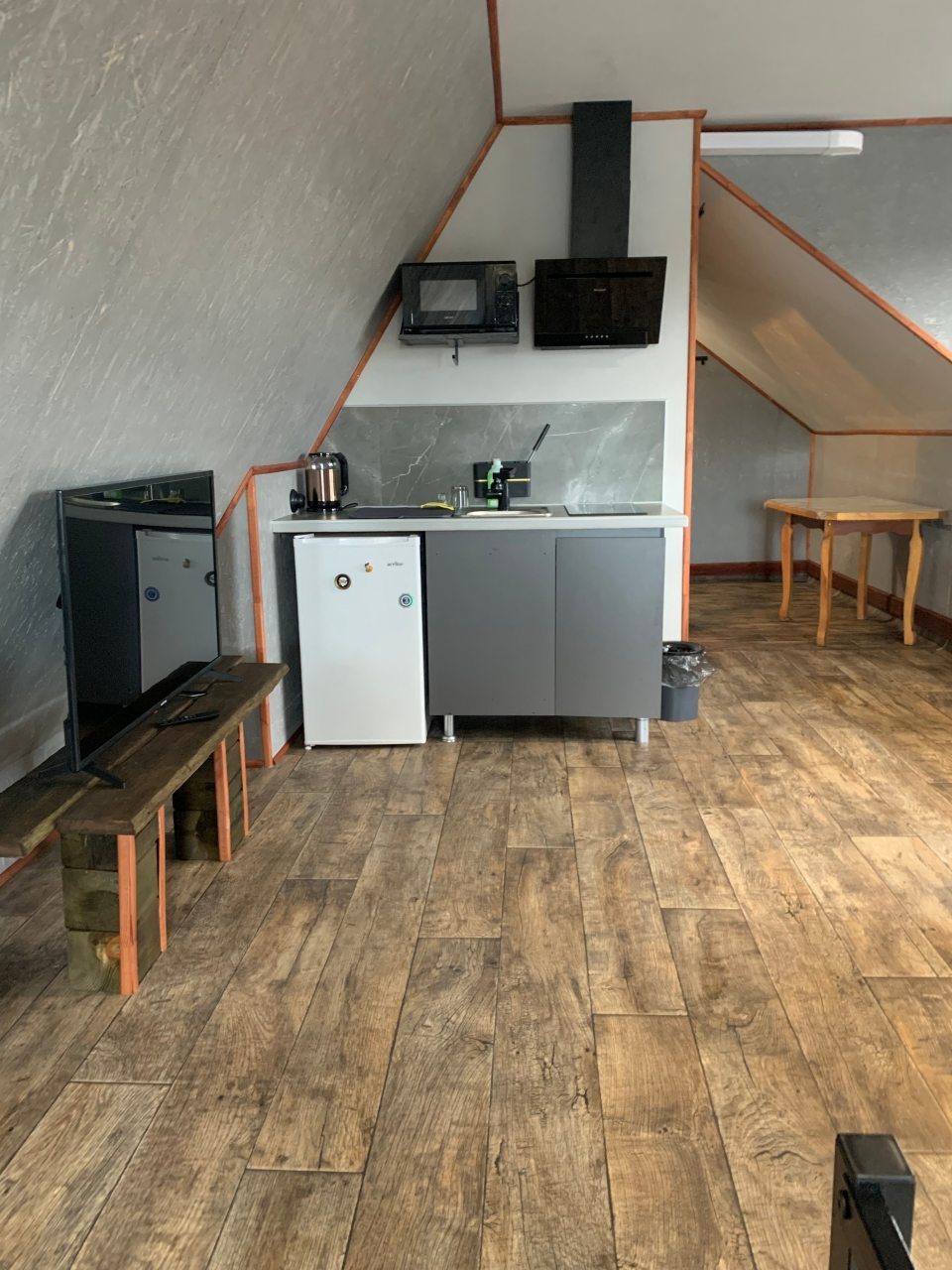 Мы одни из тех, кто тормозит здесь для ночевки по дороге на море. Находится в хорошем месте, и заезжать удобно, и где машину оставить. Номера интересные, деревянный сруб еще хранит ароматы древесины. Мебель удобная, кондиционер справляется со своей задачей. Кроме наборов для душа есть и посуда, техника.