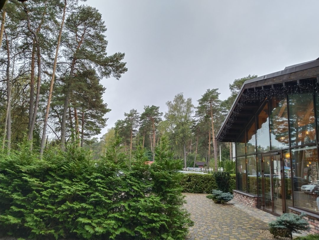 Останавливались в отеле на одну ночь , проездом в Беларусь. Номера просторные , чистые , кровать и белье отличные . Отель находиться одновременно и лесу и рядом дорога , что очень удобно для дальнейшего путешествия. Завтраки вкусные , подача красивая .