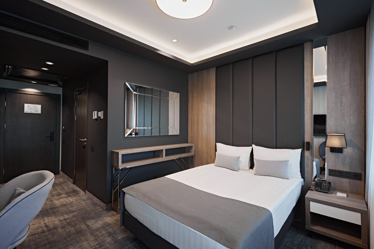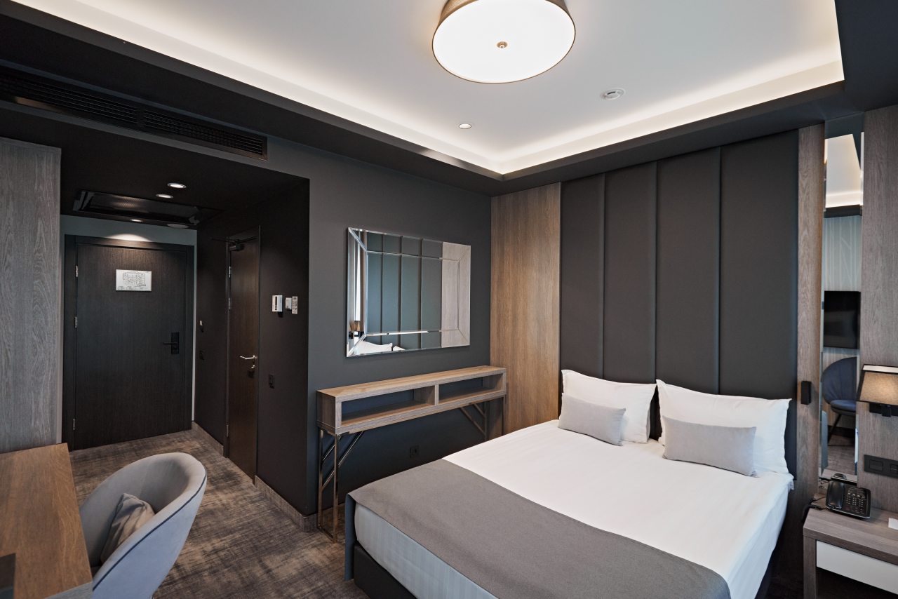 Стильные номера с собственной ванной комнатой оборудованы современной мебелью, сейфом, кондиционером, телевизором, Wi-Fi.