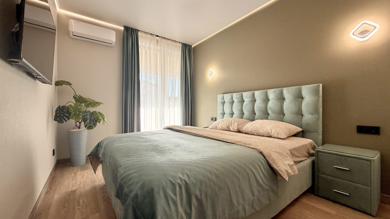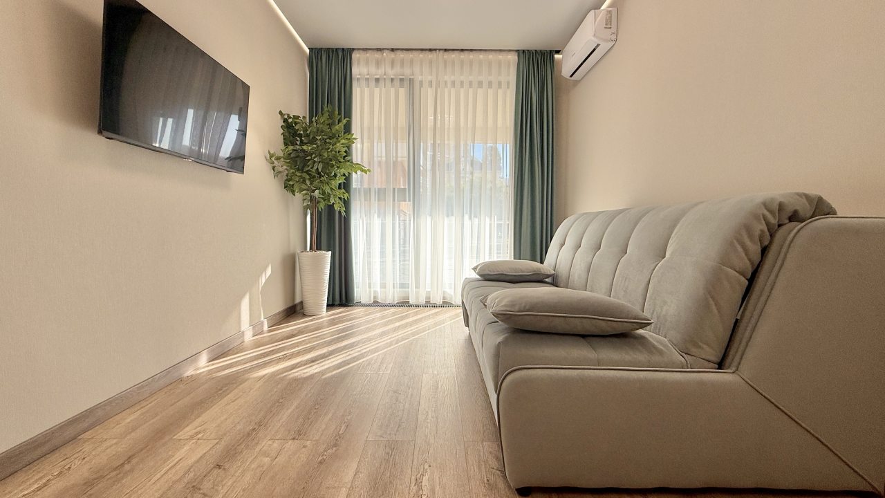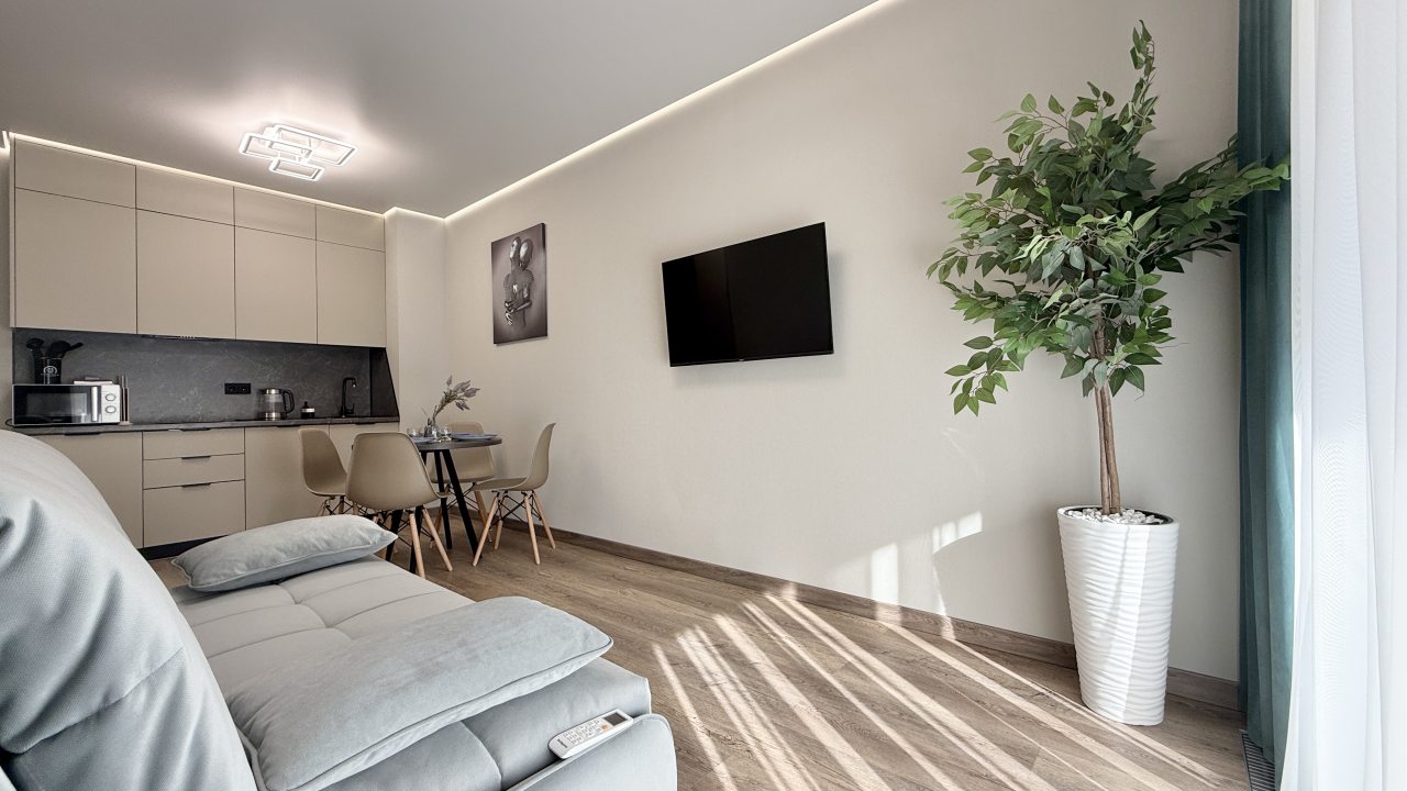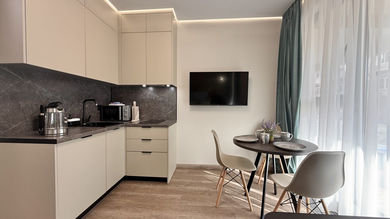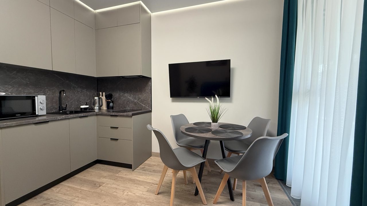 На выбор гостя предоставляются разные категории номеров: Студио, Люкс, Апартаменты, Семейные номера. Каждый их них оборудован качественной мебелью и современной техникой. Предусмотрены индивидуальные ванные комнаты и набор полотенец.