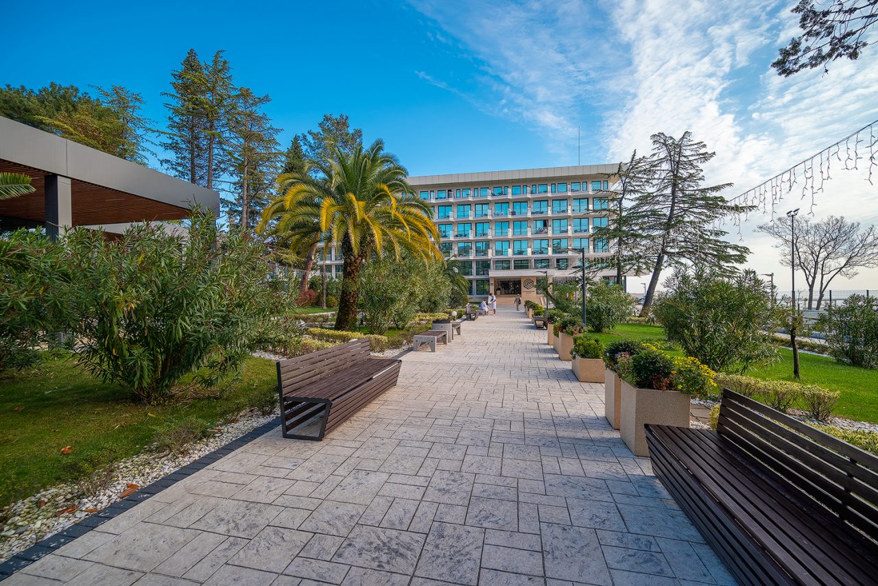 От апарт-отеля до аэропорта Сочи расстояние более 35 км. До железнодорожного вокзала — около 13 км. До Черного моря время в пути займет не более 5 минут.