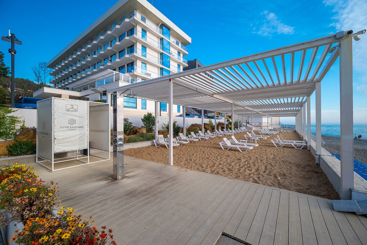 Апарт-отель «На Лучезарной 1а» входит в комплекс «Лучезарный». Территориально он располагается на первой береговой линии в Сочи. До центра города около 30 минут езды. Отелю присвоено 4 звезды, поэтому здесь вас ждут высокий уровень сервиса, комфортные условия проживания, максимальная забота со стороны персонала и широкий спектр услуг. Например, в их числе два подогреваемых бассейна под открытым небом, собственный галечный пляж, панорамная сауна, спортивная площадка и детская площадка, а также другие услуги.