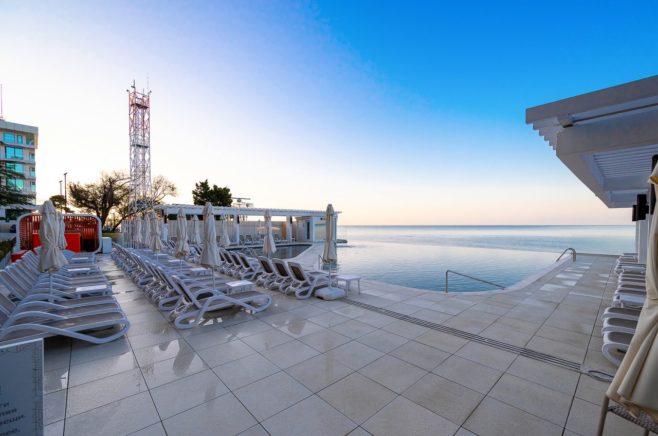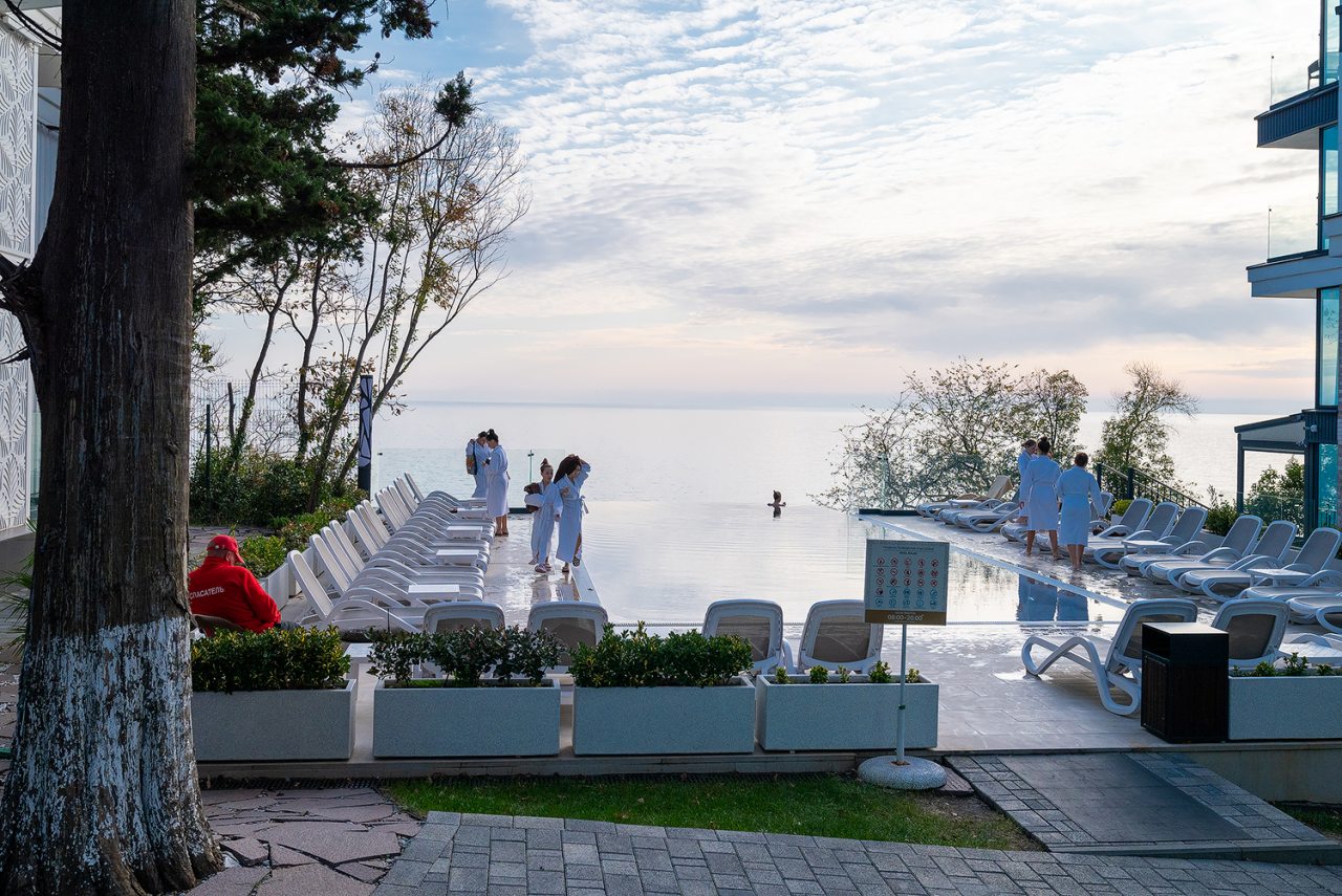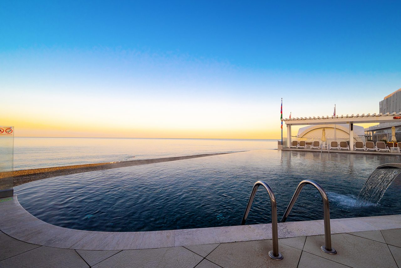 Два бассейна инфинити, один из них находится прямо на берегу моря, сауна, рядом ресторан. Второй бассейн инфинити находится в скале на высоте более 25 метров с панорамными видами на центр Сочи.