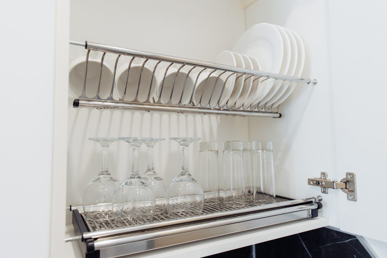 На кухонной зоне можно найти электрический чайник, СВЧ-печь, стол со стульями. Перекусить можно в ближайшем кафе «Кофейный ботик».