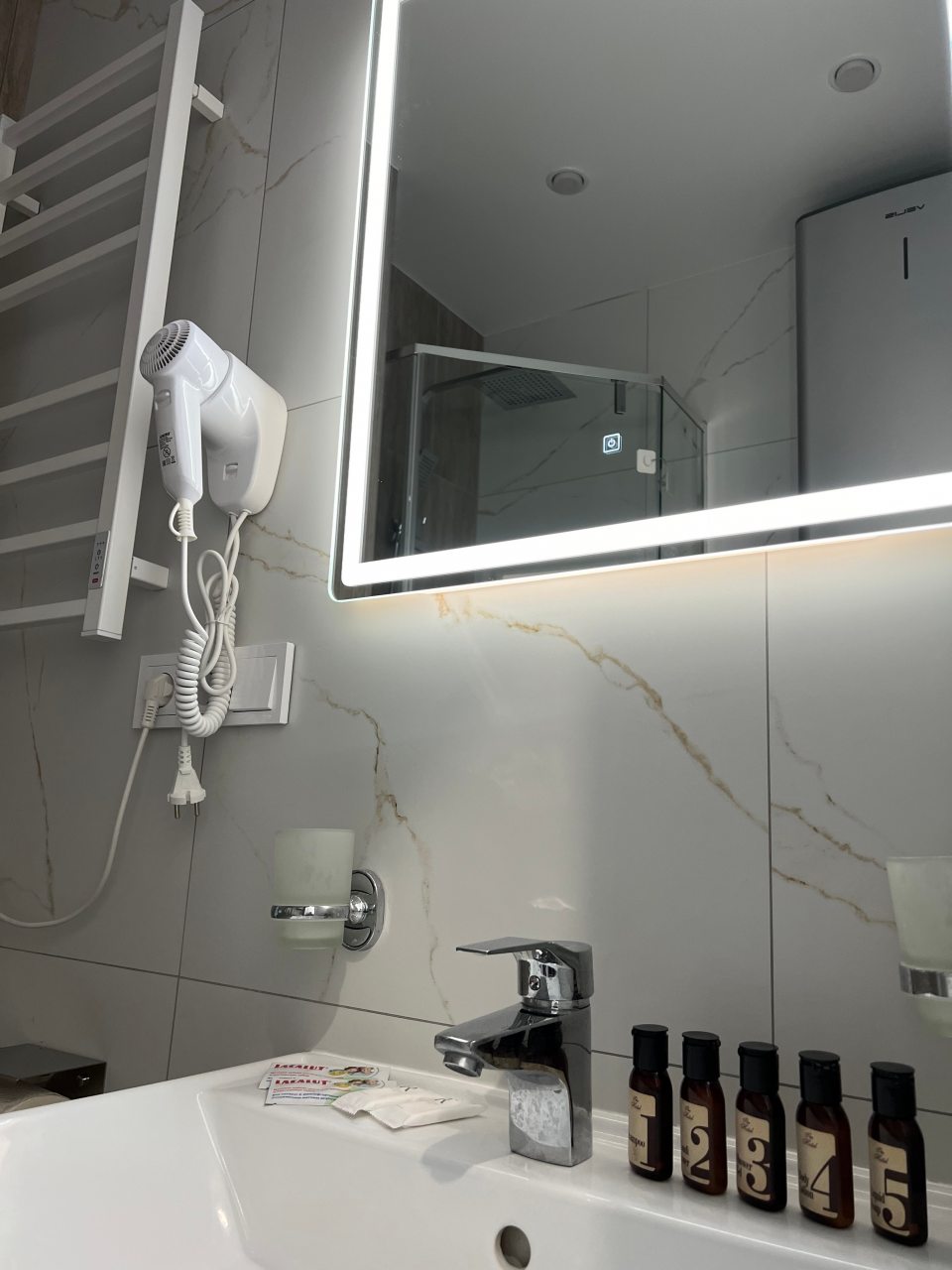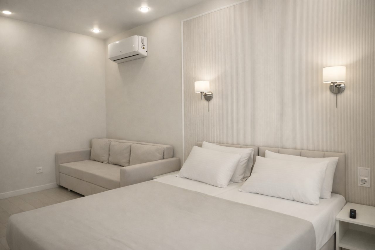 Для гостей предлагаются два двухместных номера, в которые сеть всё необходимое для отличного отдыха: двуспальная кровать со свежим бельём, телевизор, высокоскоростной интернет, затемнённые шторы для комфортного сна, шкаф для хранения вещей, диван - кровать, пуфик, зеркало. В ванной комнате есть сантехника, душ, тапочки, фен, стиральная машина.