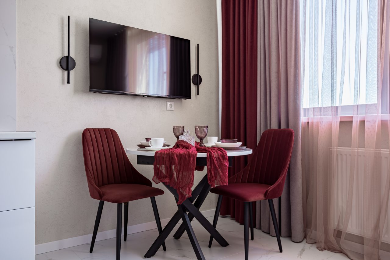Квартира была очень стильной. Нам понравилось выбранное цветовое решение, интерьер благодаря этому был яркий и приятный. В квартира было чисто. Минусов мы не выявили.