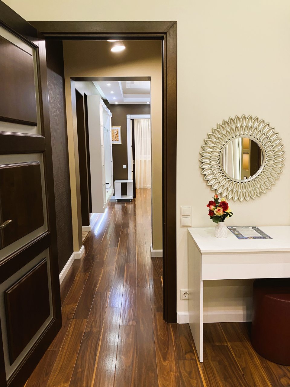 Квартира очень просторная. Места в ней более чем предостаточно. Здесь явно не будешь тесниться. Локация для нас была достаточно удобная, рядом были магазины и различные кафе. Цена адекватная, заявленным услугам соответствовала. Звукоизоляция норм, по крайне мере соседей мы точно не слышали. Отдых вышла тихим и спокойным, запоминающимся.