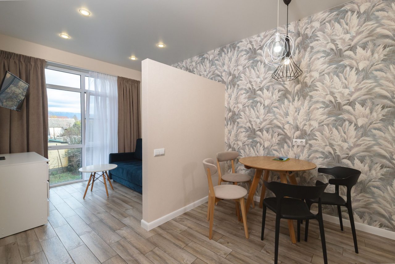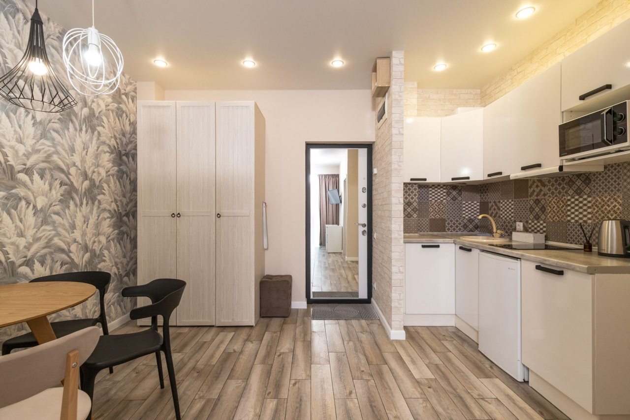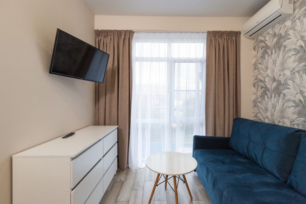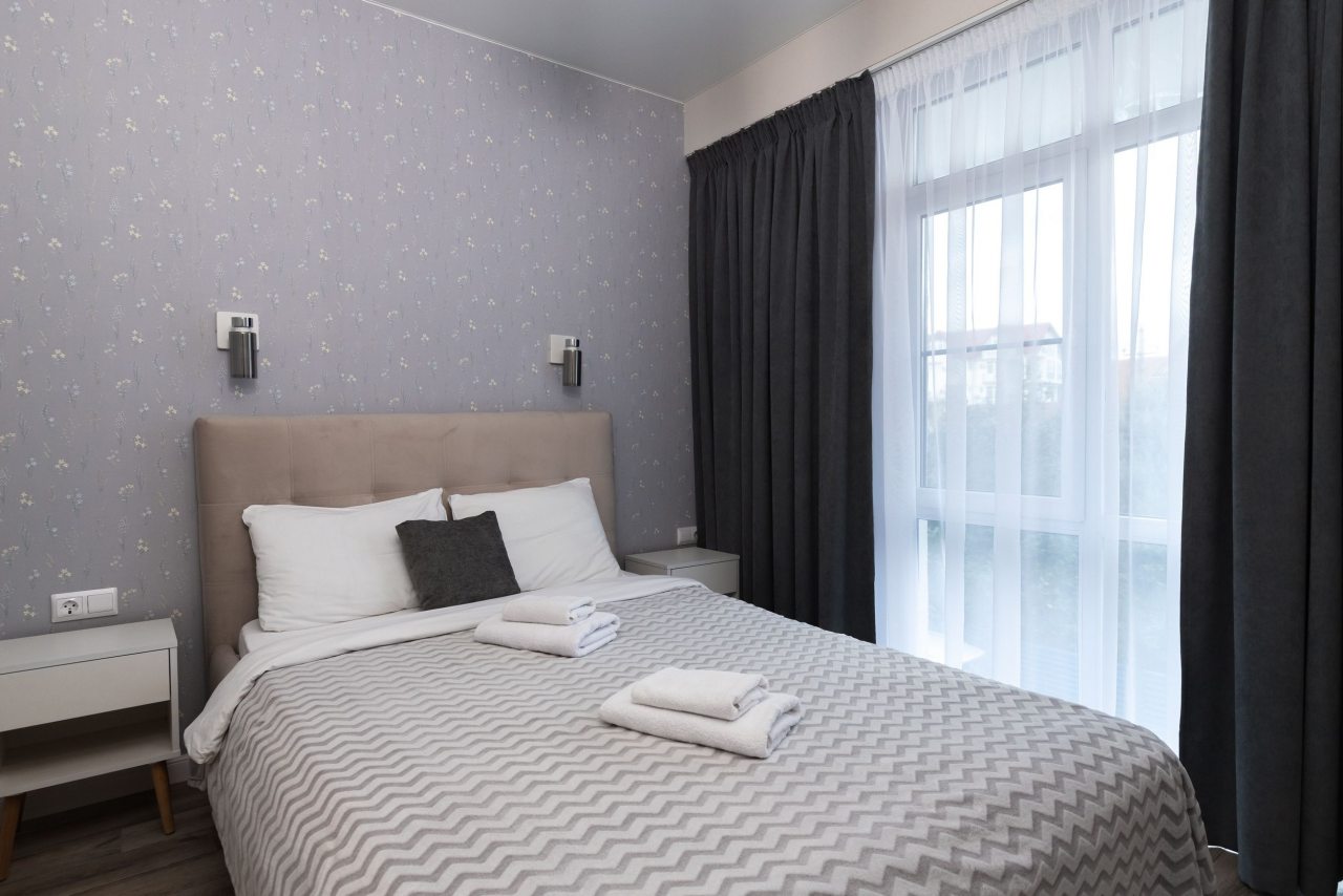 Апартаменты с современной планировкой нас устроили. Подобрали на сайте по цене и интересующим нас датам. Расположение здесь тоже неплохое, неподалеку есть магазины, кафе и море. Чистота в квартире идеальная, абсолютно не пожалели, что остановились здесь.