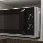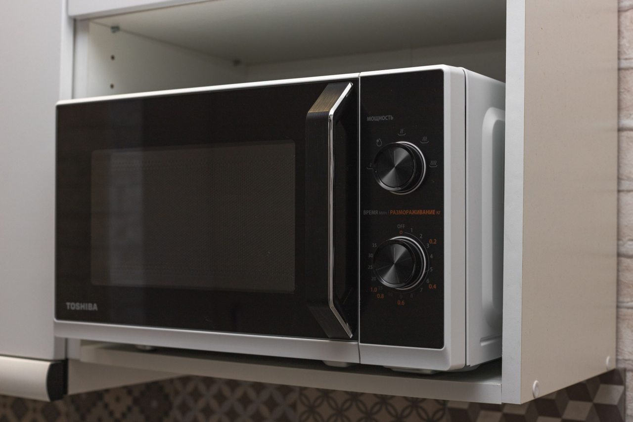 Собственная кухня обустроена обеденным столом и гарнитуром, оборудованным техникой для приготовления еды, холодильником, чайником, посудой и приборами.