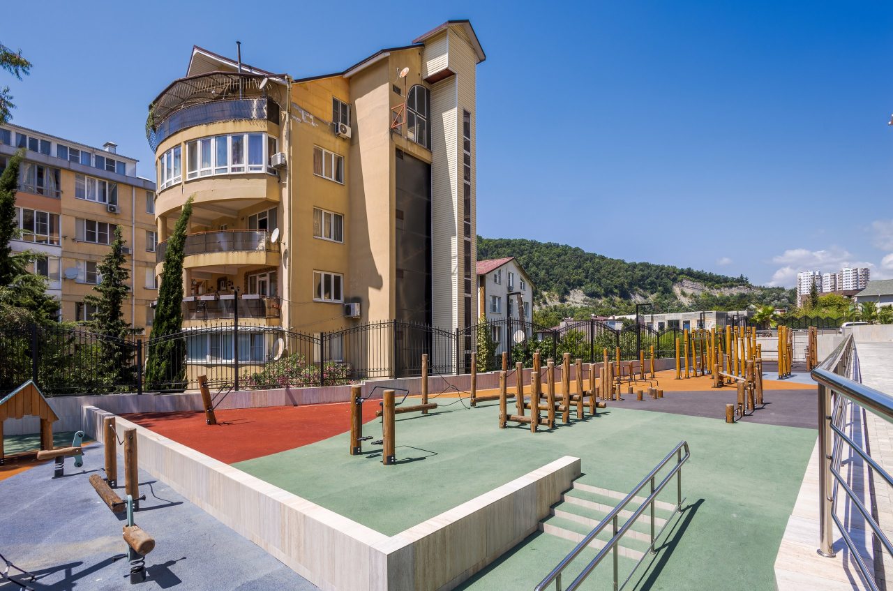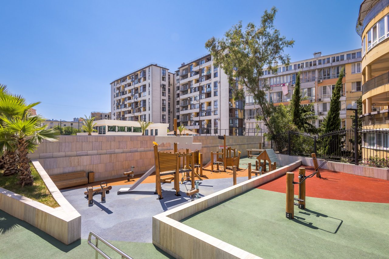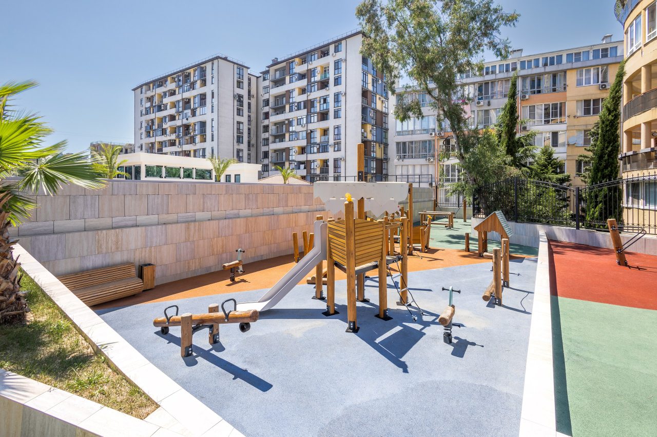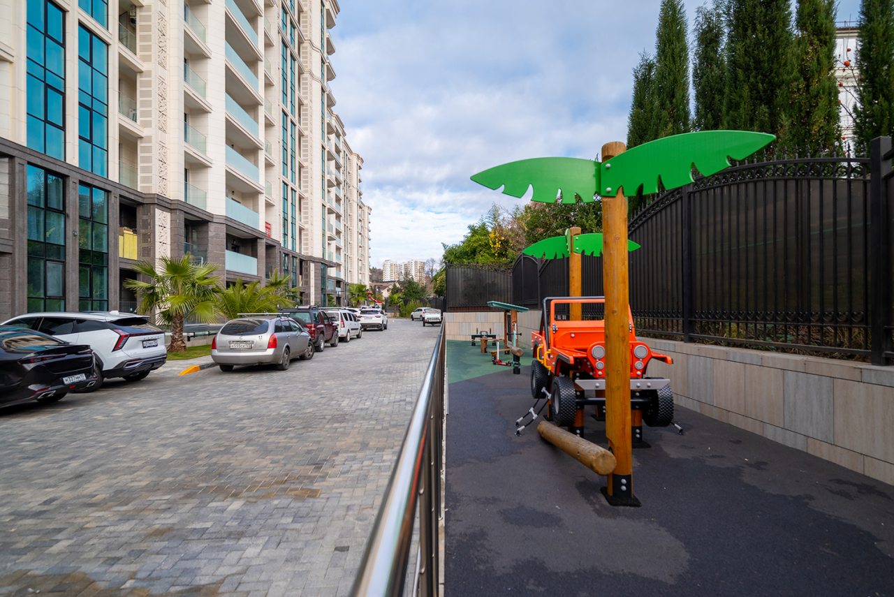 Жилой комплекс совсем новый, есть детские площадки, зона ворк-аут, бассейн, но пока мы жили бассейн не работал, менеджер сообщил, что открытие будет летом, пока точной информации нет.
