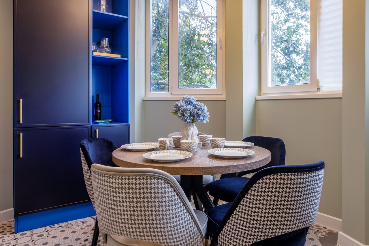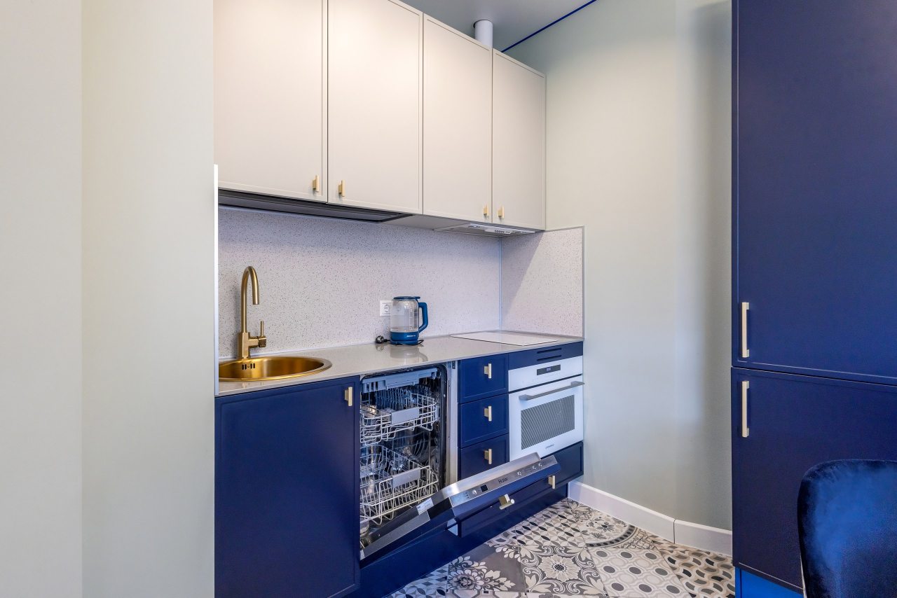 На уютной кухне у вас будет возможность готовить любимые домашние блюда и напитки, так как в наличии плита, духовой шкаф, посуда, холодильник, посудомоечная машина, чайник, красивая обеденная зона.