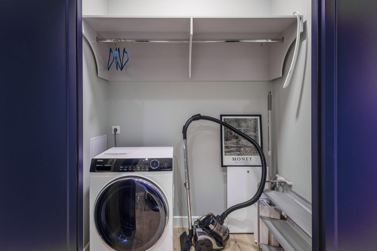 Внутри всё продумано для комфортного проживания и отдыха гостей, включая удобные кровати, мягкие кресла и диван, вместительные шкафы, письменный стол, телевизор, стиральную машину, пылесос, а также санузел с душевой и необходимой сантехникой.