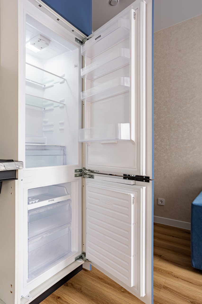 Кухня оснащены бытовыми приборами для самостоятельной организации питания, приготовления полноценных блюд и перекусов: варочная панель, духовой шкаф, двухкамерный холодильник, микроволновая печь, чайник. Поблизости есть продуктовый магазин «Магнит».