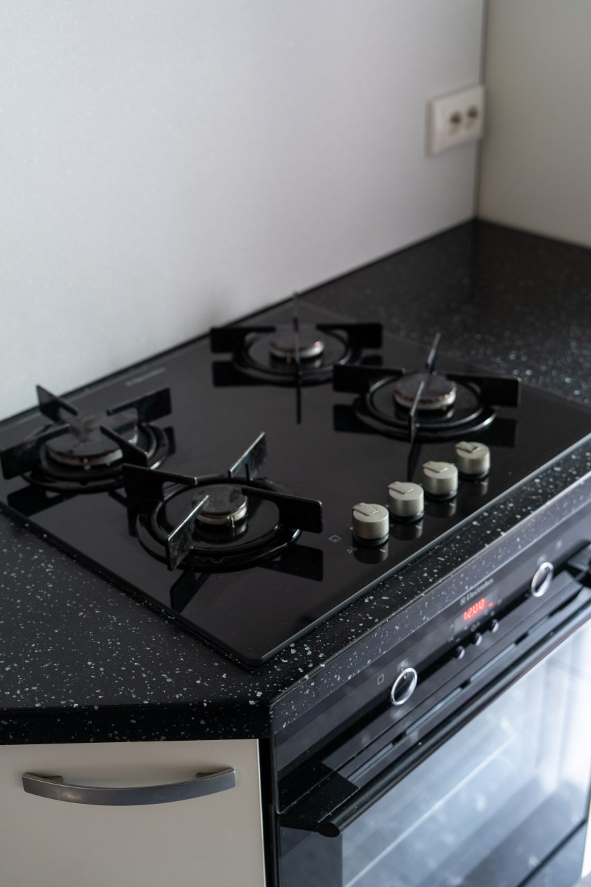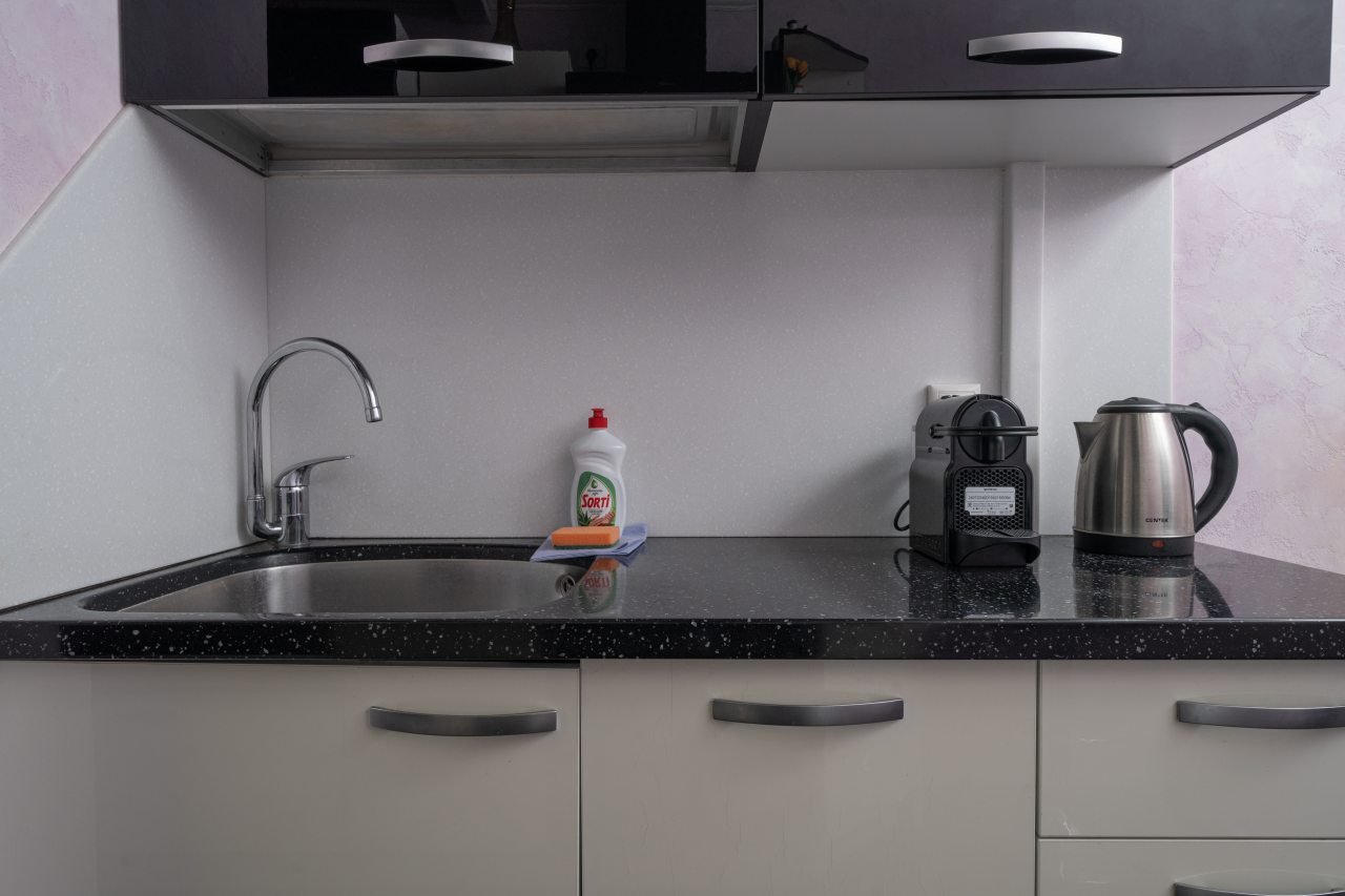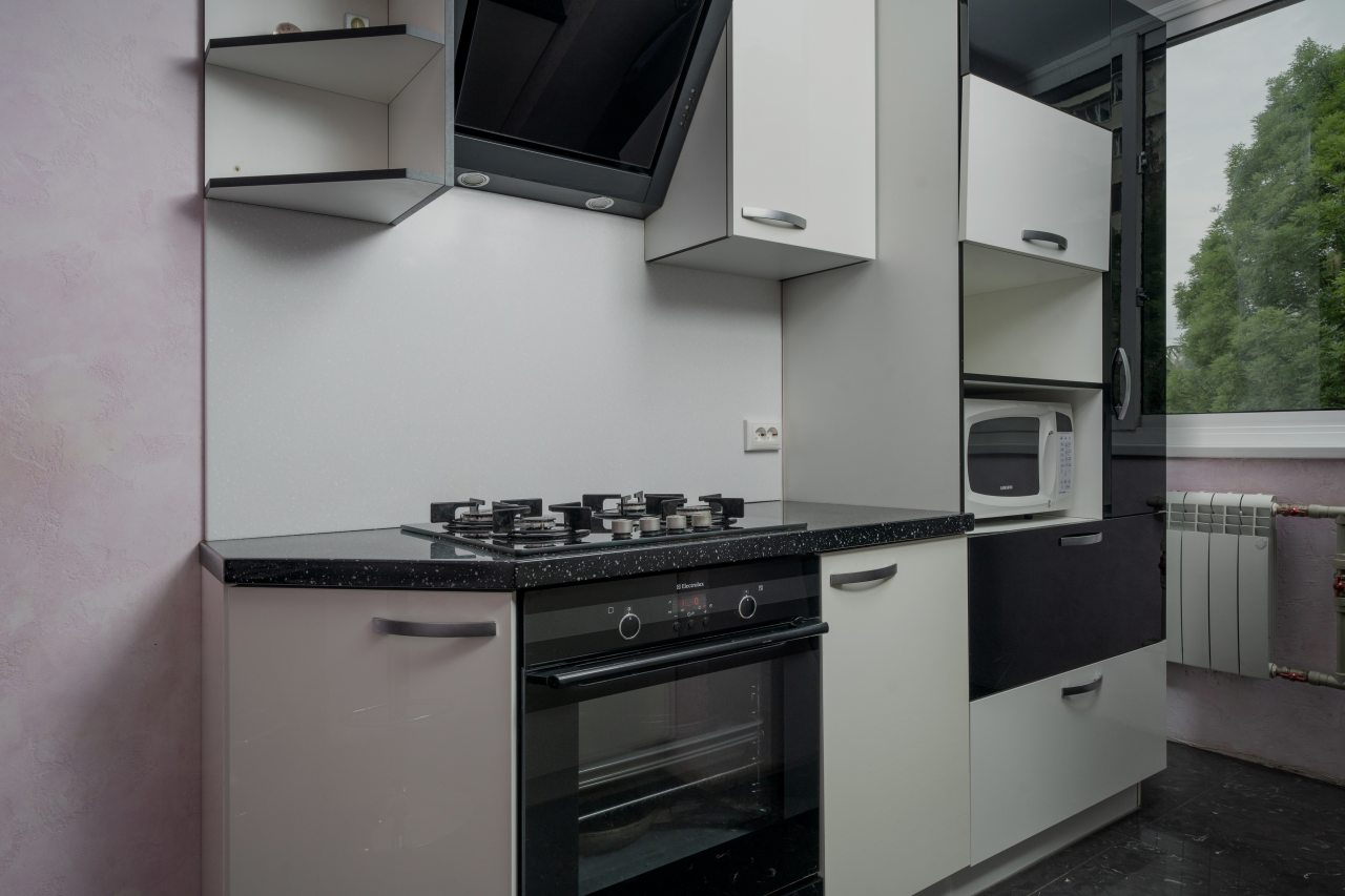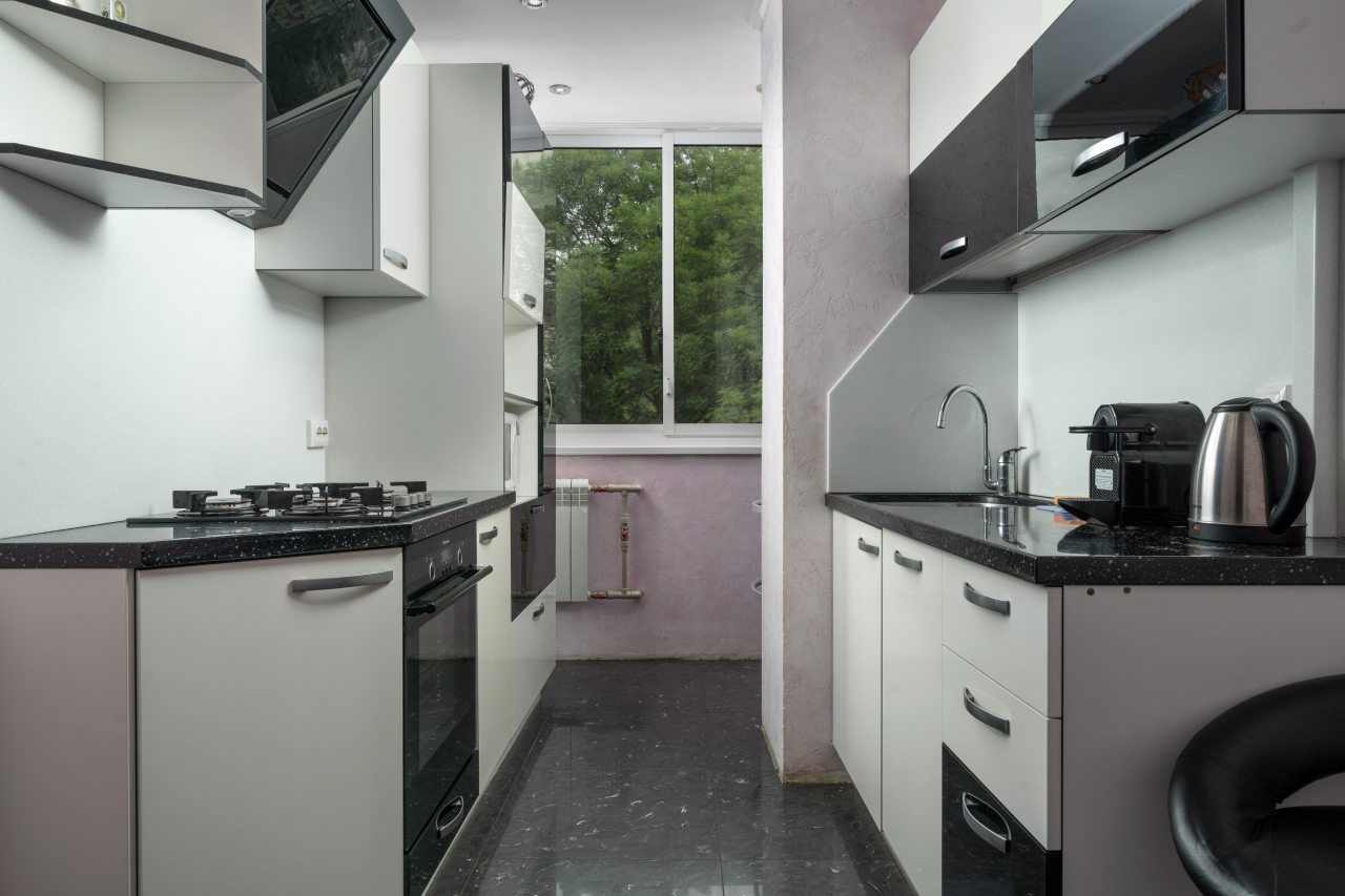 Из недостатков: немного странный дизайн кухни, вдвоем на ней не развернуться.