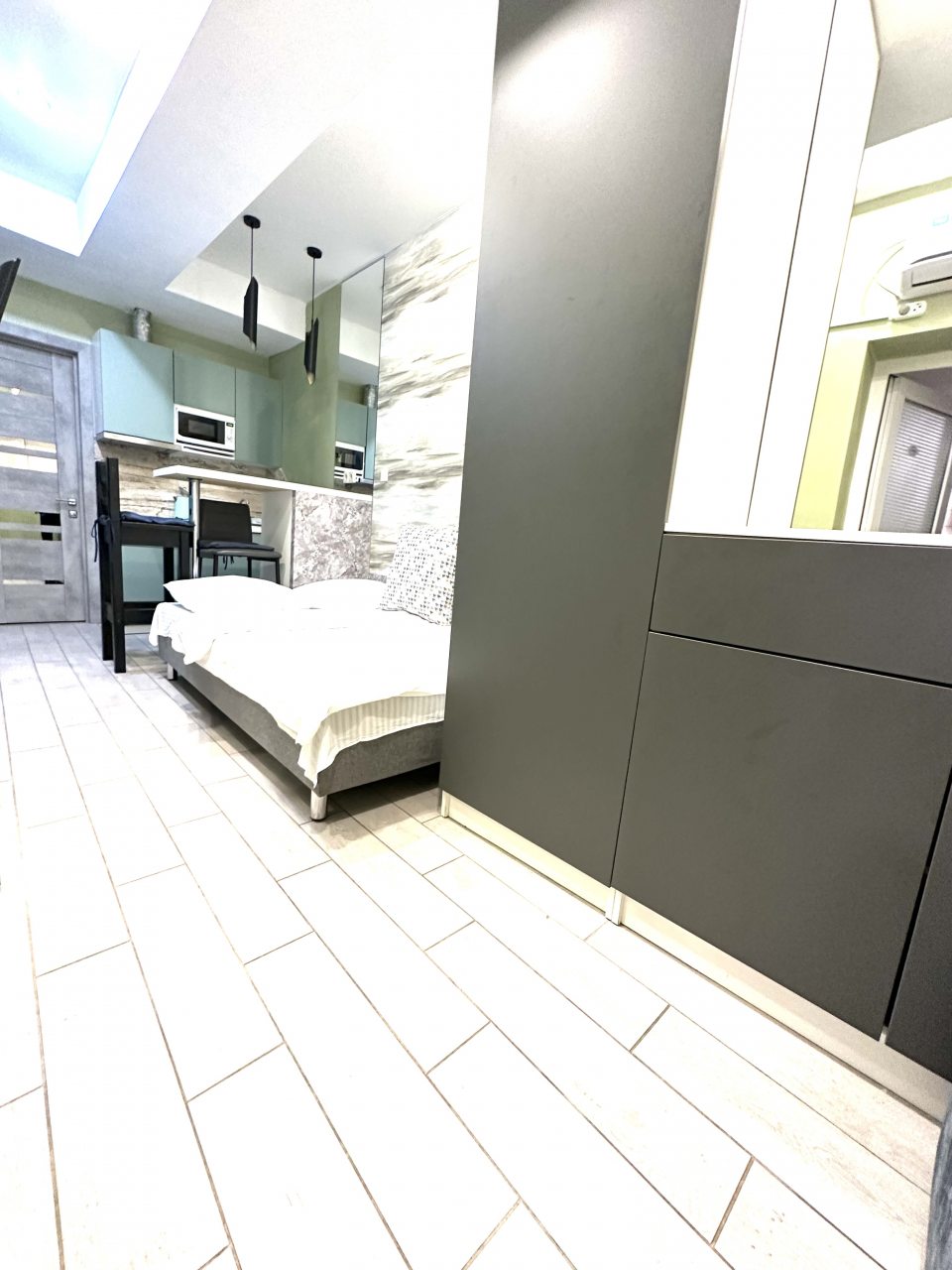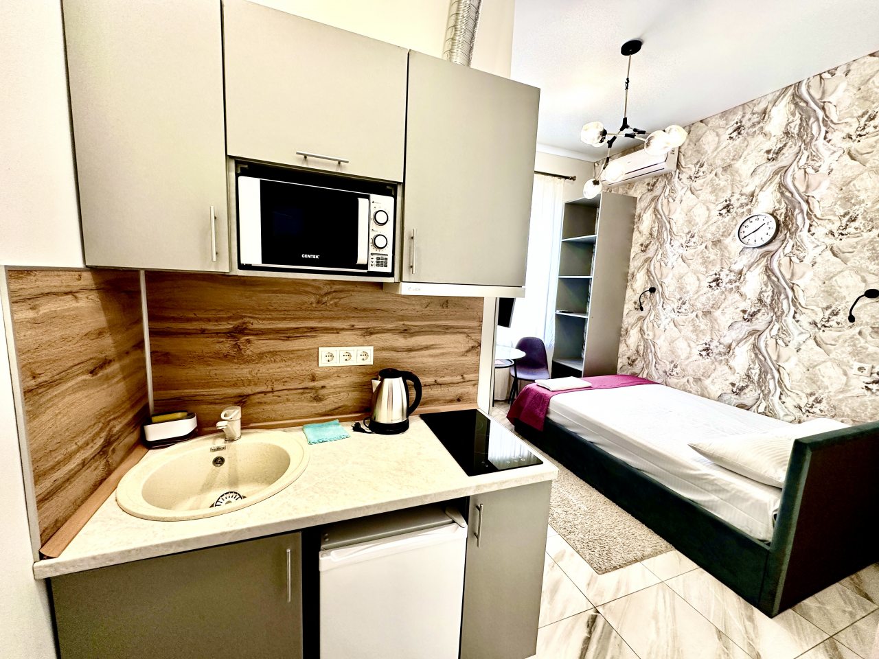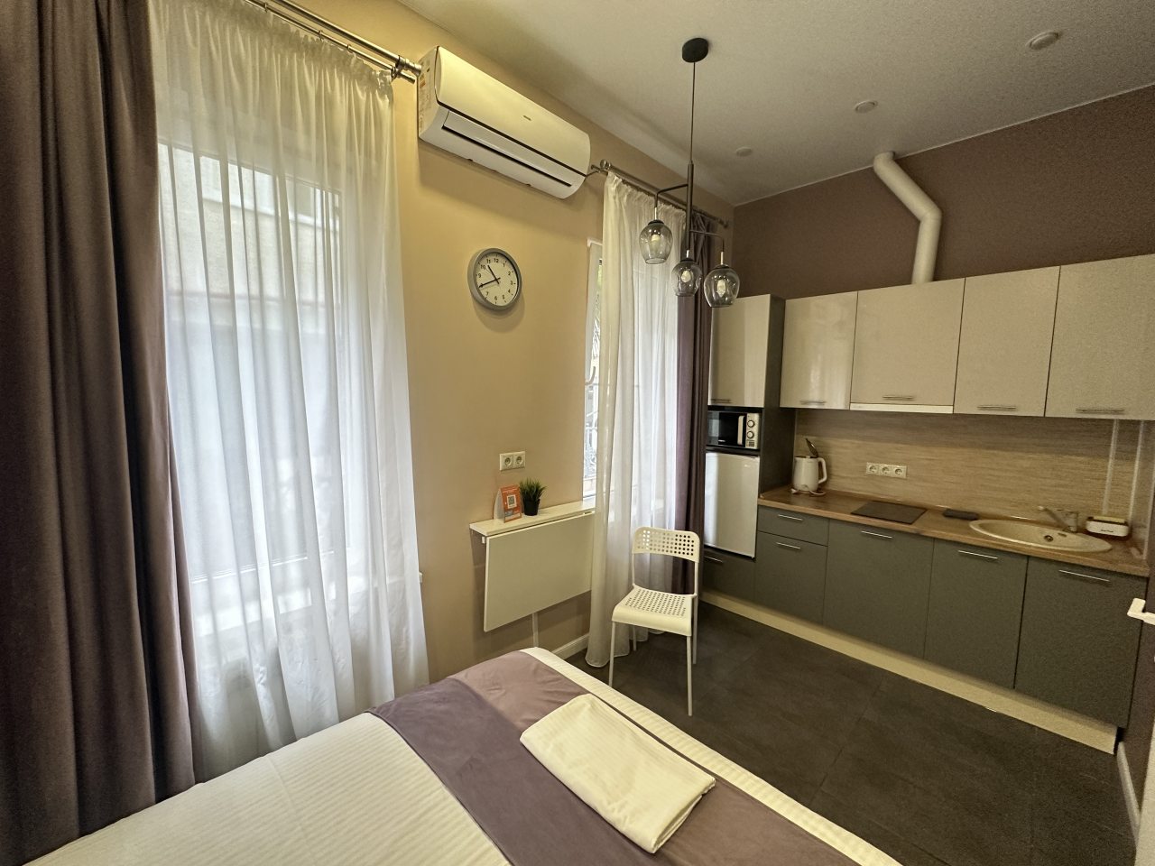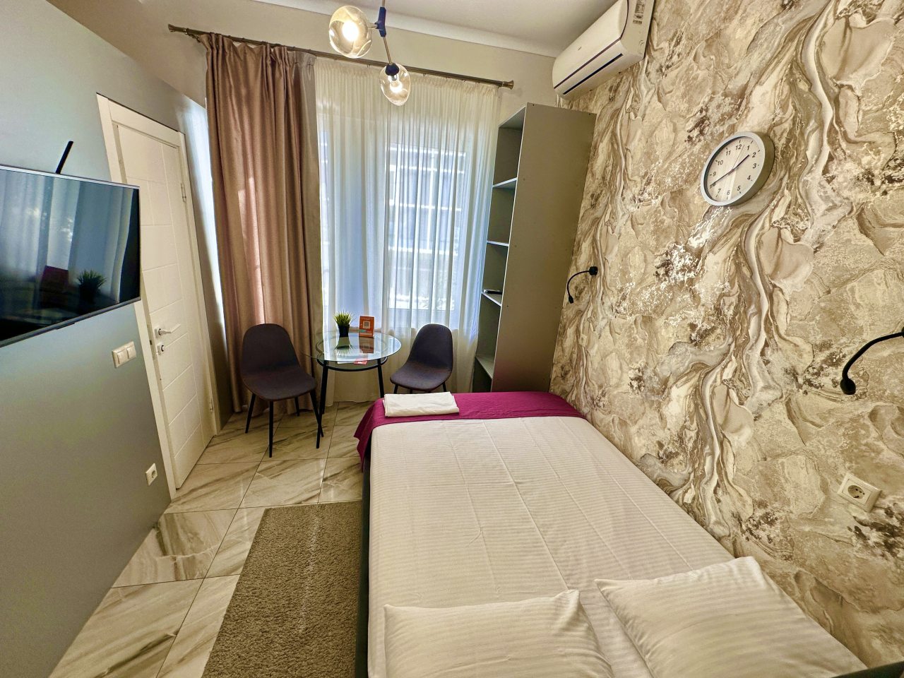 Очень удачное местоположение. Центр города. Рядом магазины и кафе. До моря и набережной минут 15 неспешным шагом.