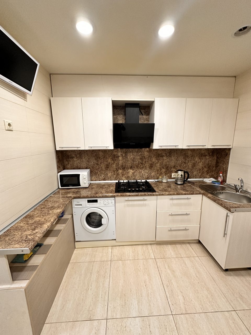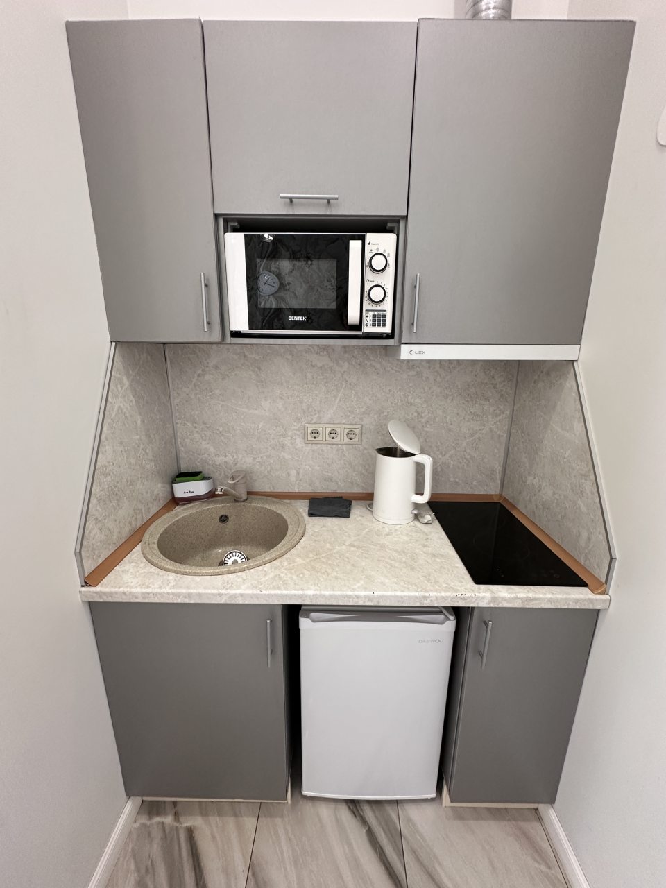 Очень удобно, что есть кухня и стиральная машина. Также в номере были гладильная доска и утюг.