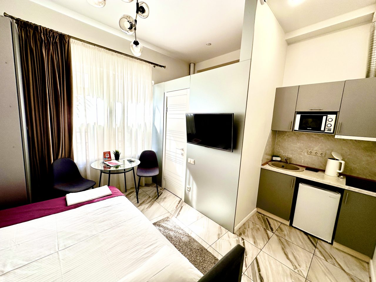Удобное расположение в Центральном районе Сочи,красивые виды вокруг, тишина, комфорт, в номере есть всё необходимое для проживания, вежливый персонал, уборка по графику.