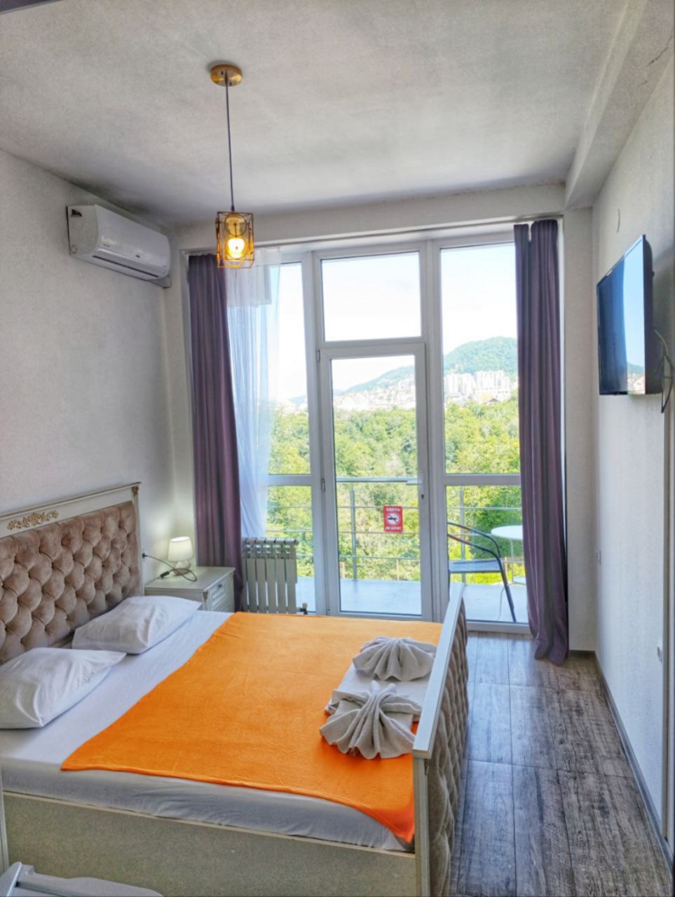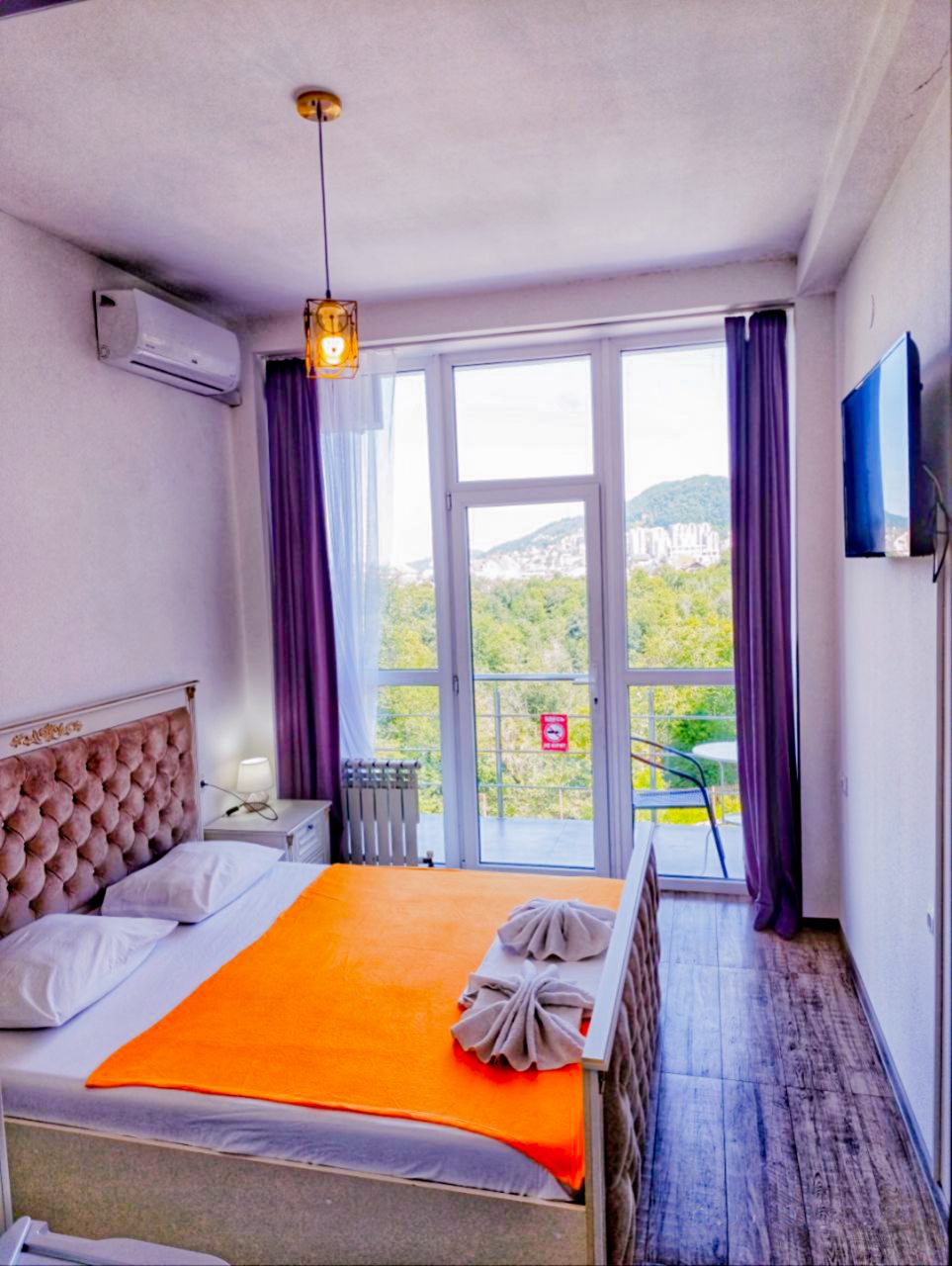 Мы проживали в номере со своей кухней !(что всем советую ) номер ухоженный , чистый . И самое главное в нем есть все необходимое . На территории есть бассейн , что очень здорово , т. К до пляжа идти сложно , по лесу .. ладно с горы , а в гору тяжеловато . Магазины в шаговой доступности
