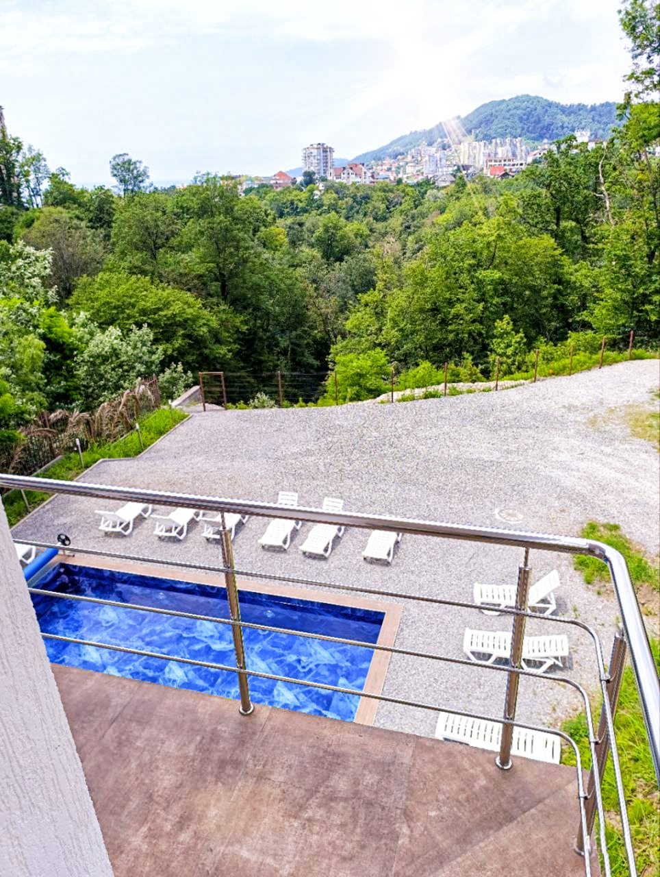 В распоряжении гостей смотровая площадка с зоной отдыха, подогреваемый сезонный бассейн, беседку с мангалом, креслами качалками и линией для самостоятельного приготовления вкусной пищи, а также фруктовый сад. Также на территории есть огороженная автостоянка. Расстояние до аэропорта Сочи - 27,1 км, до железнодорожного вокзала - 3,9 км.