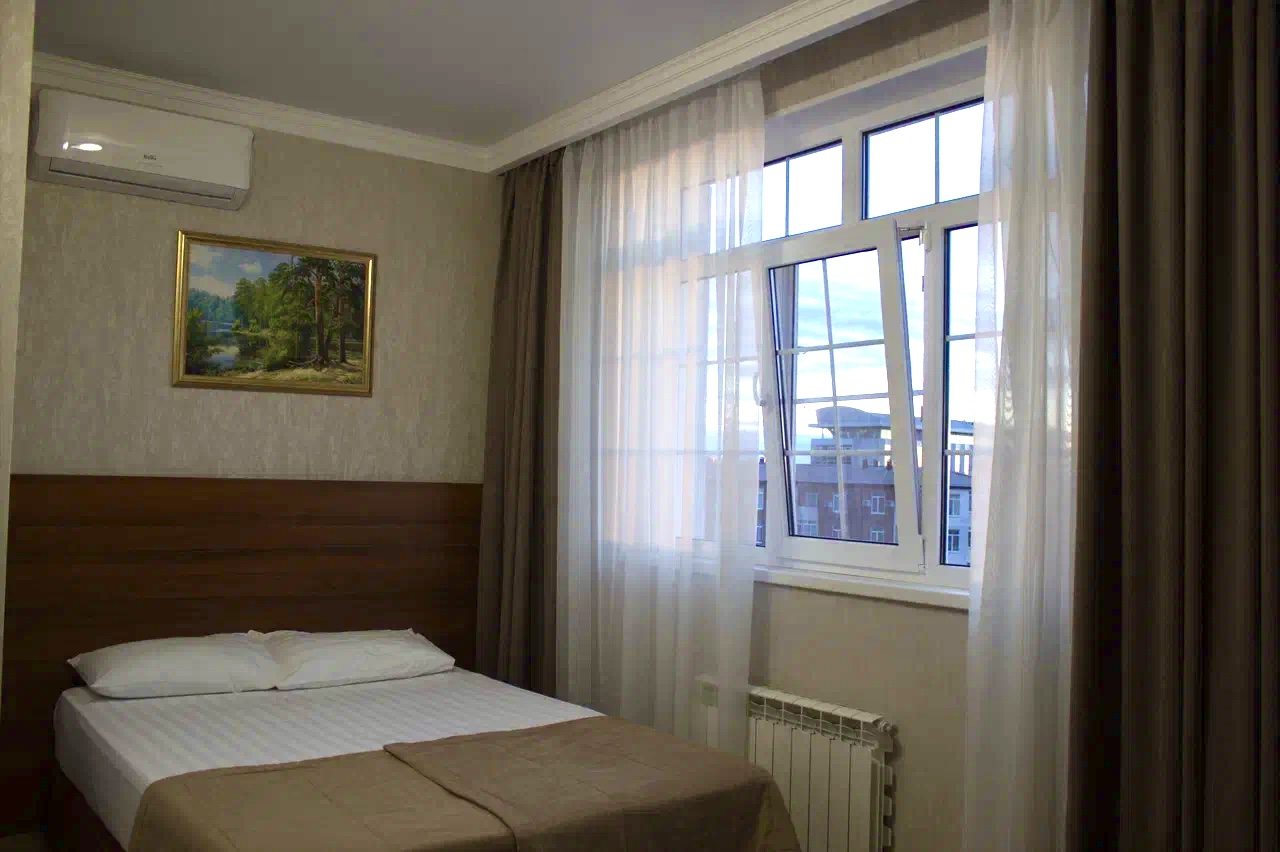 Для гостей предоставляются комфортабельные номера различных категорий: от двухместных с балконом до апартаментов с кухней. Каждый из вариантов имеет необходимую технику и мебель для полноценного отдыха. Гостям предоставляются халаты, тапочки и фен.