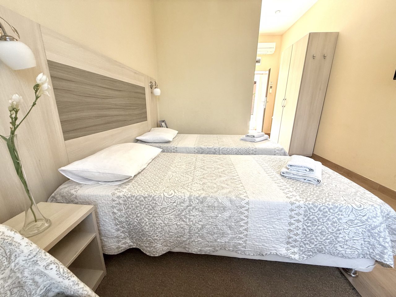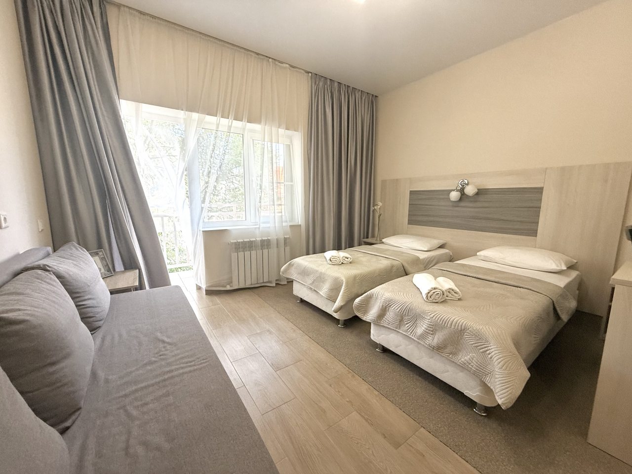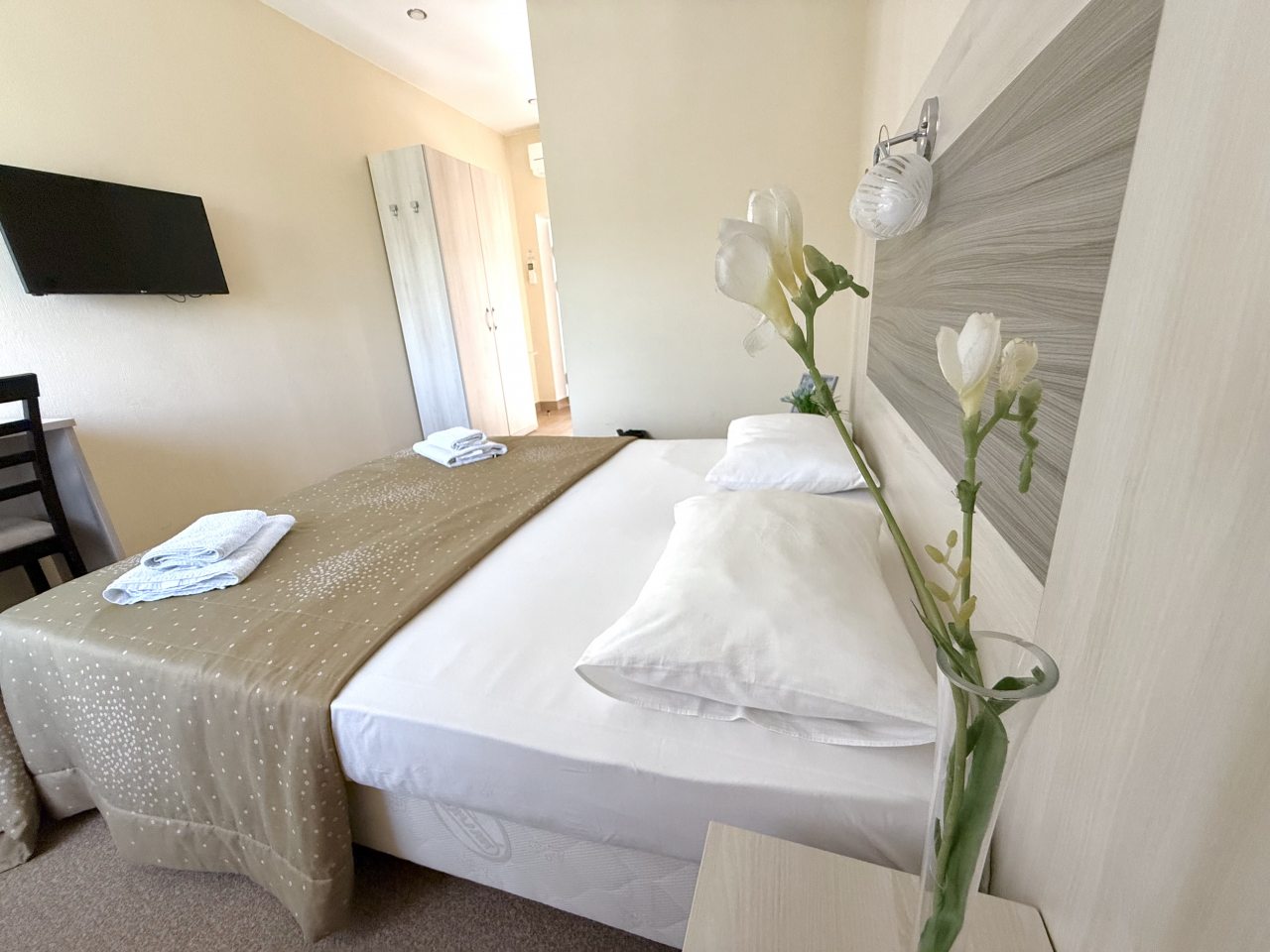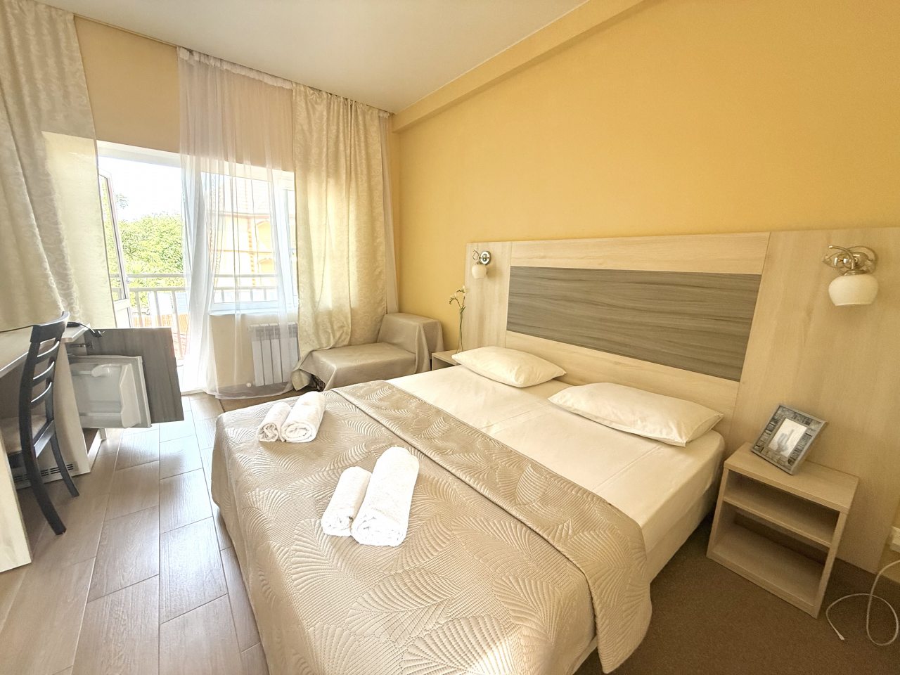 Для размещения предлагаются номера с отделкой в европейском стиле. Наличие ярких акцентов в оформлении хорошо смотрятся и создают обстановку гармонии и уюта. В собственной ванной комнате Вас ждут чистые полотенца и средства личной гигиены. Удобное спальное место гарантирует качественный сон. В конце дня, утомленные солнцем, здесь, вы сможете расслабиться.