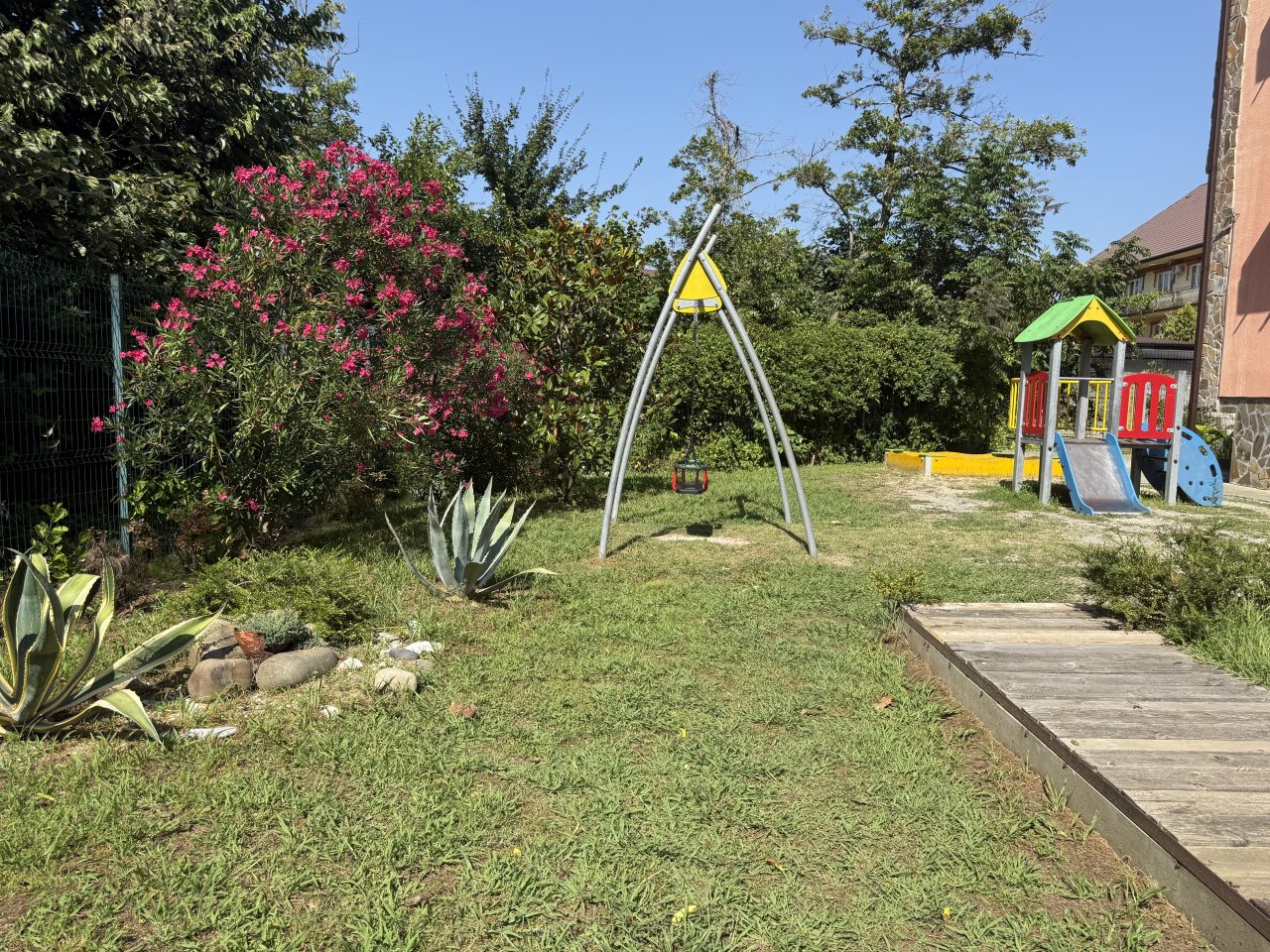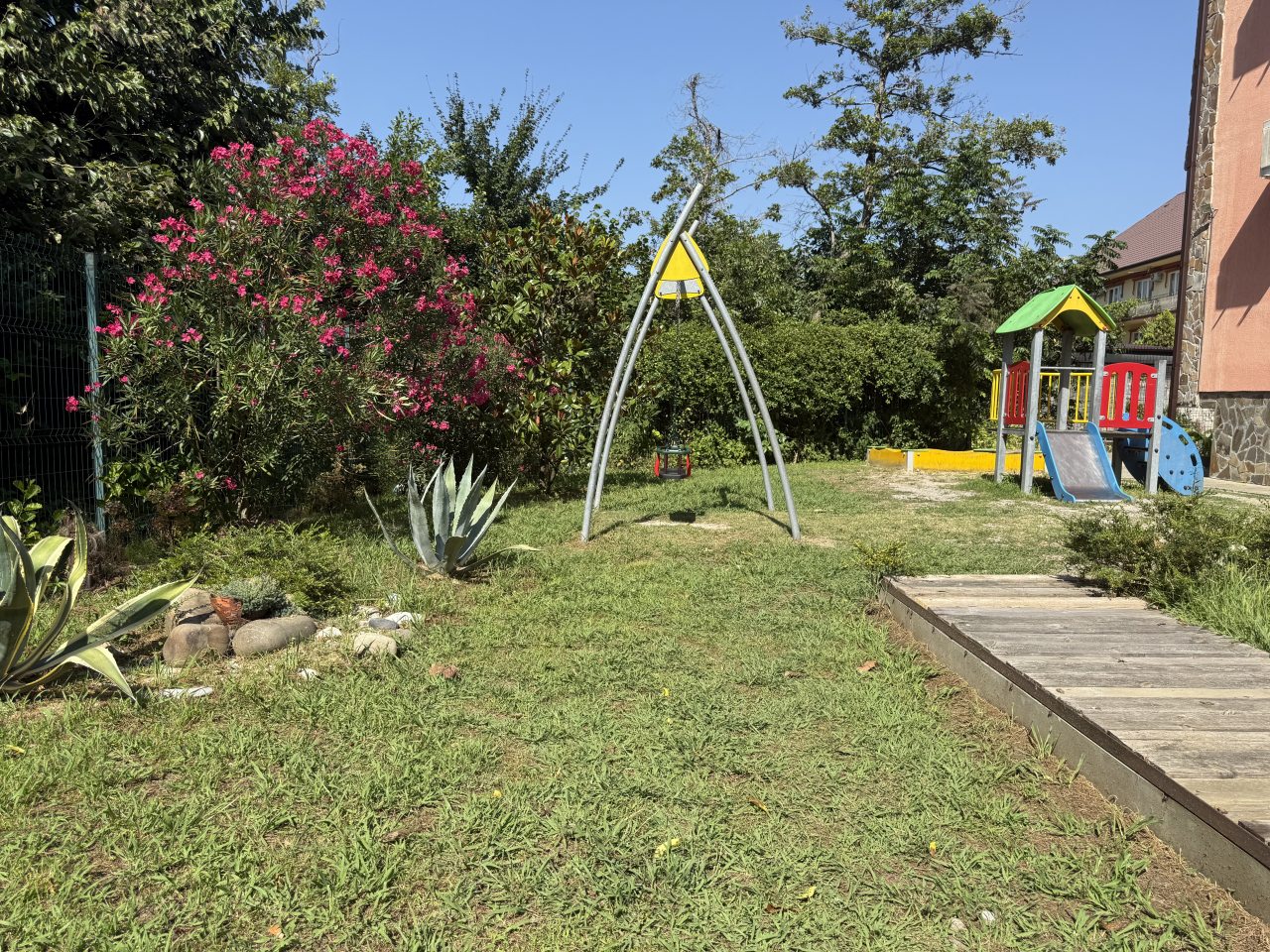 К услугам гостей бассейн с подогревом, бесплатная парковка, детская площадка. В 10 минутах расположен аквапарк, до центра Сочи около 30 км. Расстояние до аэропорта — 42,2 км. Расстояние до железнодорожного вокзала — 2,3 км.